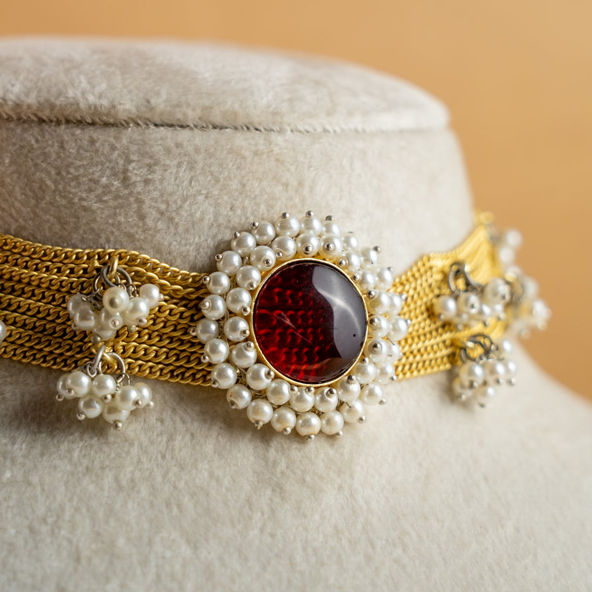 LUCIA BIJOUX PREMIUM GOLD TONED HANDMADE CHOKER WITH EARRINGS CH307