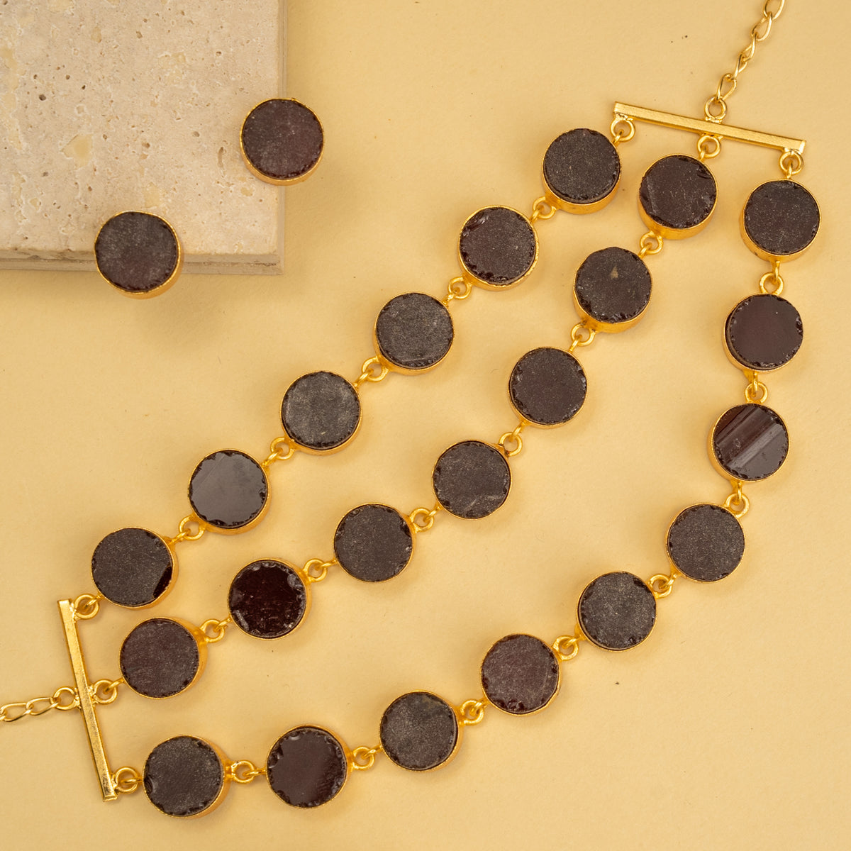 AILANY BIJOUX RAW STONE GOLD TONED 3 LAYERED HANDMADE CHOKER WITH EARRINGS CH428
