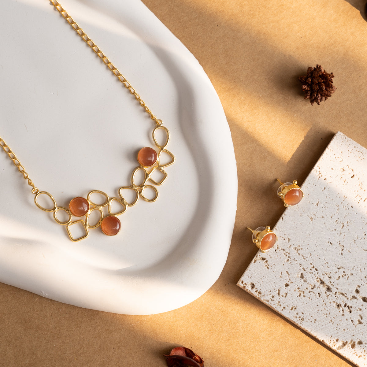 EDEN GOLD TONED HANDMADE HAND HAMMERED NECKLAC AND EARRINGS OF20
