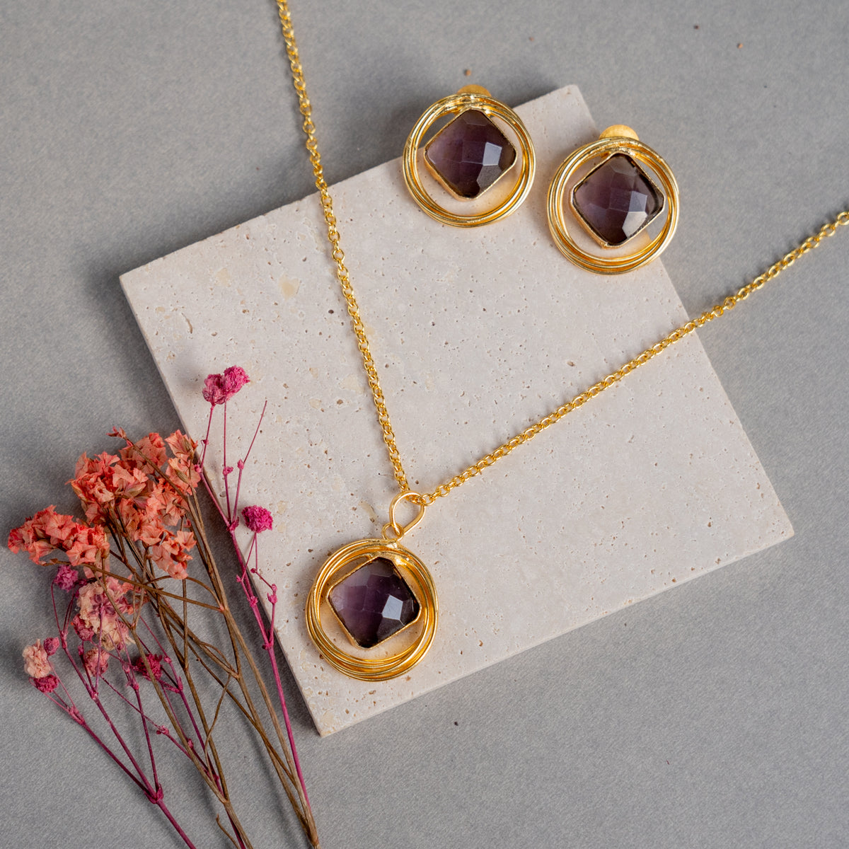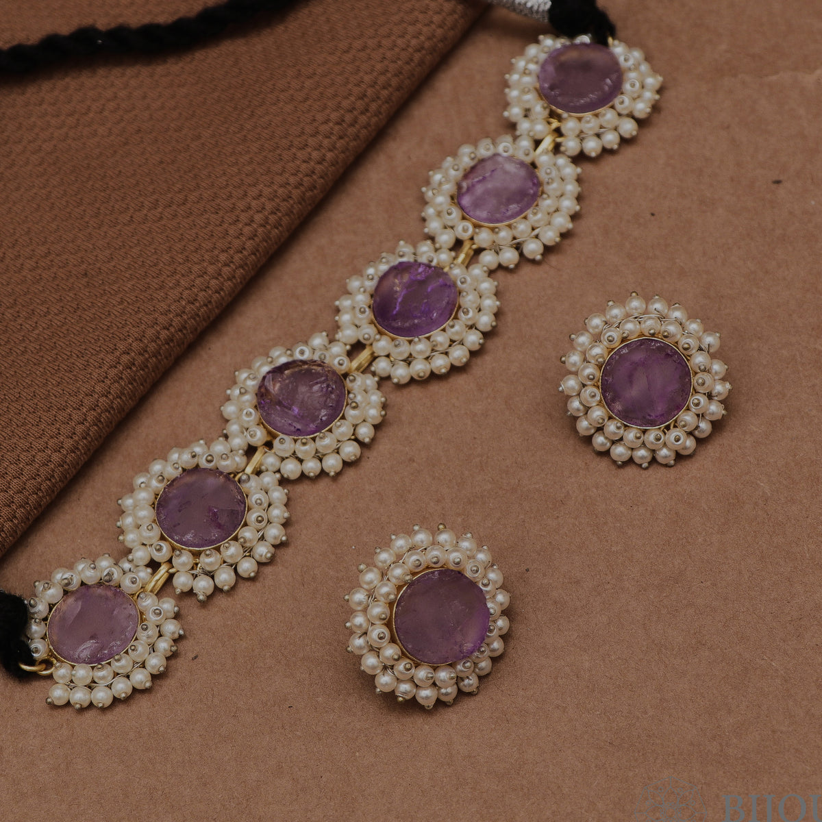 WILLOW BIJOUX PREMIUM HANDMADE RAW STONE CHOKER WITH EARRINGS CH122