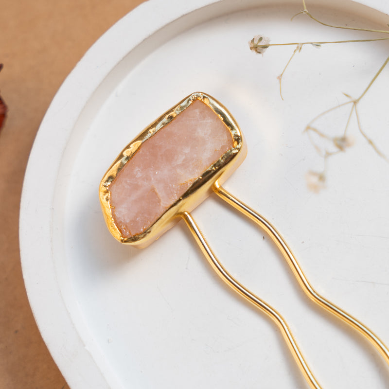 RIMANA HANDMADE PREMIUM GOLD TONED NATURAL STONE HAIR CLIP HEAD ACCESSORIES HA12