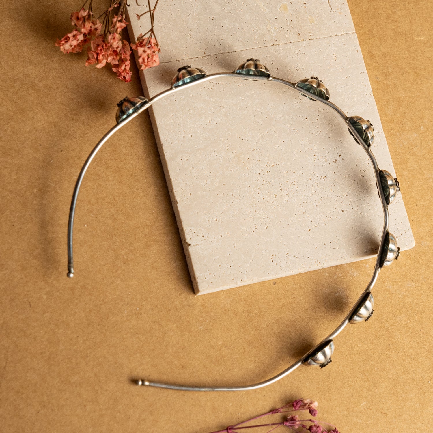 ANUSHKA SILVER TONED FAUX SILVER ANTIQUE HEAD ACCESSORIES HA03