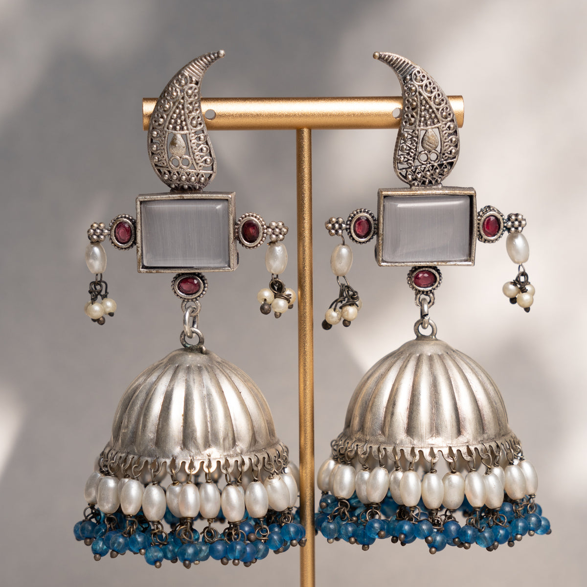 FALAK FAUX SILVER ANTIQUE SEMI HANDMADE EARRINGS/ JHUMKAS ER763