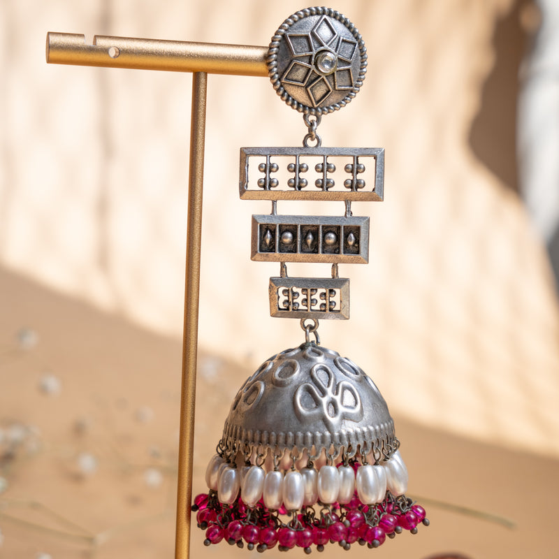 SAMANTHA FAUX SILVER HANDMADE RAW AND RUSTIC EARRINGS/JHUMAS ER57