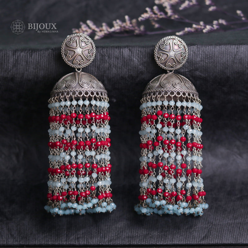 AZURE GRACE SEMI HANDMADE JHUMKA OXIDIZED ER141