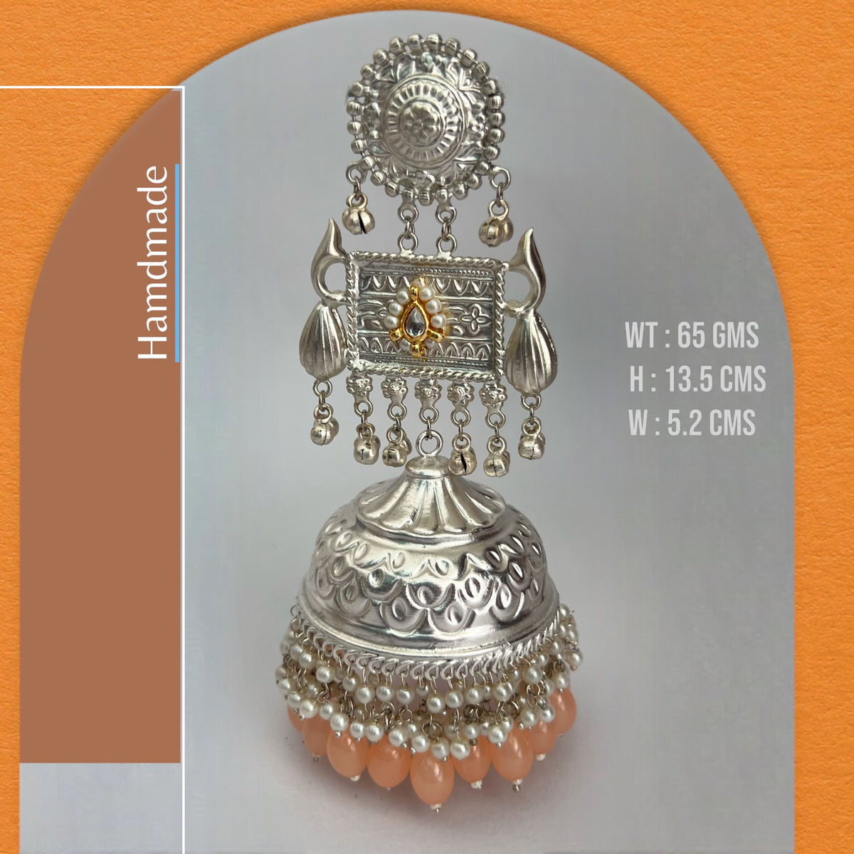 PARITHA SILVER LOOK ALIKE PREMIUM POLISH HANDMADE DUAL TONE JUMBO JHUMKA ER361