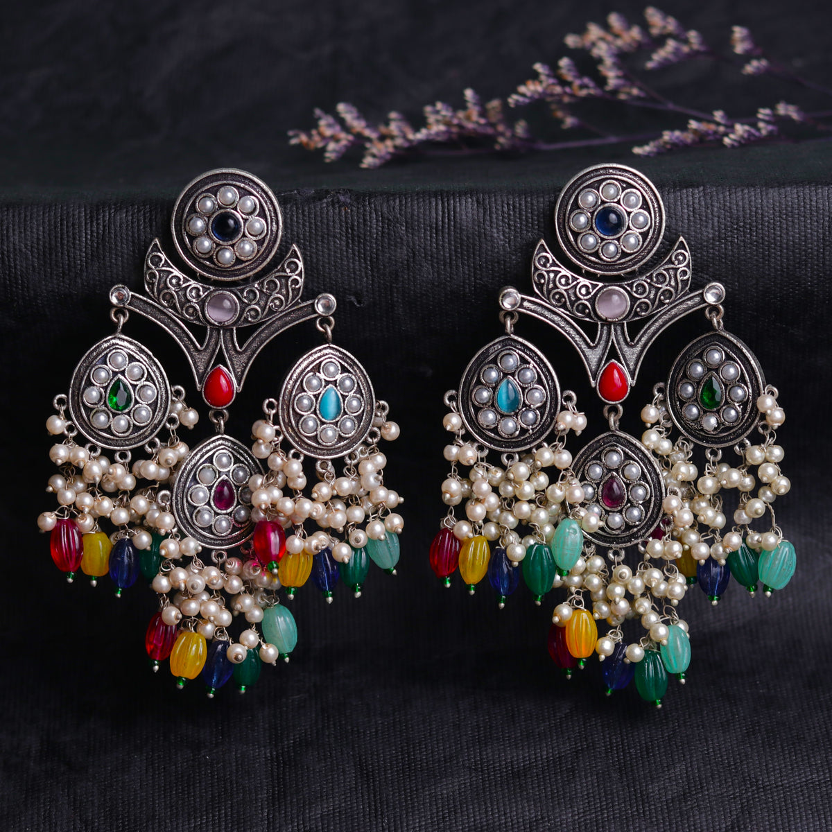 ARABELLA SEMIHANDMADE JUMBO OXIDIZED BEADED EARRING ER106