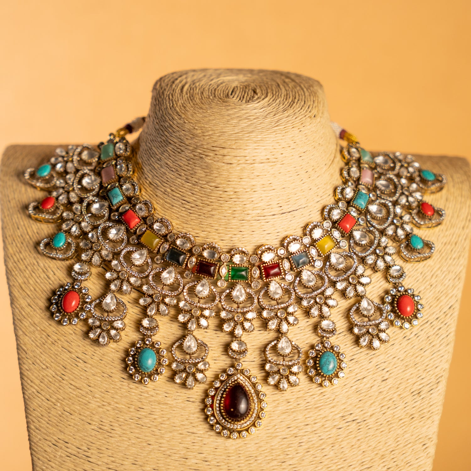 ADVIKA BRIDAL BIJOUX PREMIUM HANDMADE DARK POLKI NECKLACE WITH EARRING NL304