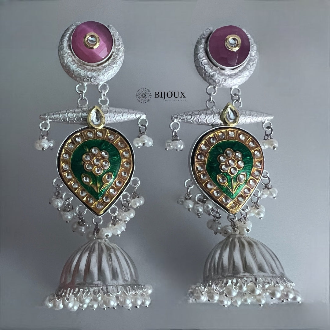 MIA HANDMADE SILVER LOOK ALIKE PREMIUM POLISH LAC AND MONALISA JHUMKA ER365