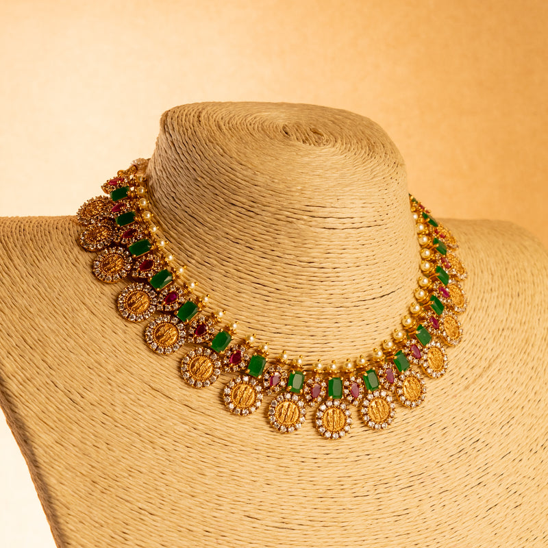 NITHYA GOLD TONED ANTIQUE FINISH NECKLACE WITH EARRINGS NL168