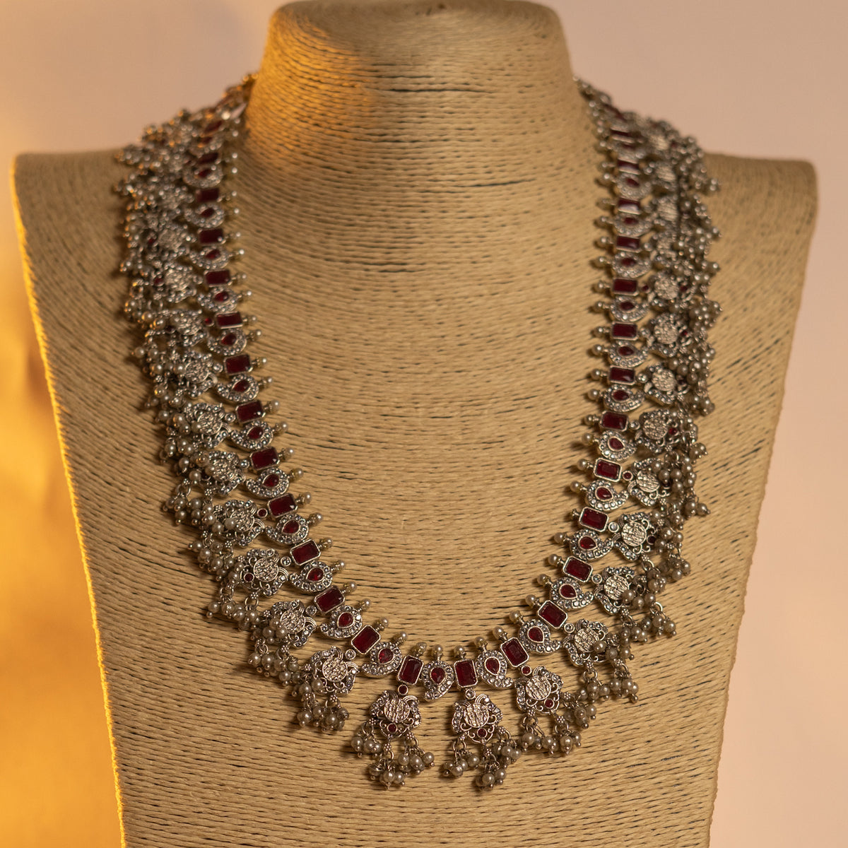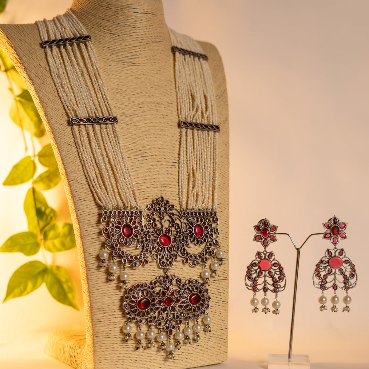 THIRA SILVER LOOK ALIKE CLASSIC ANTIQUE MALA WITH EARRINGS ML45