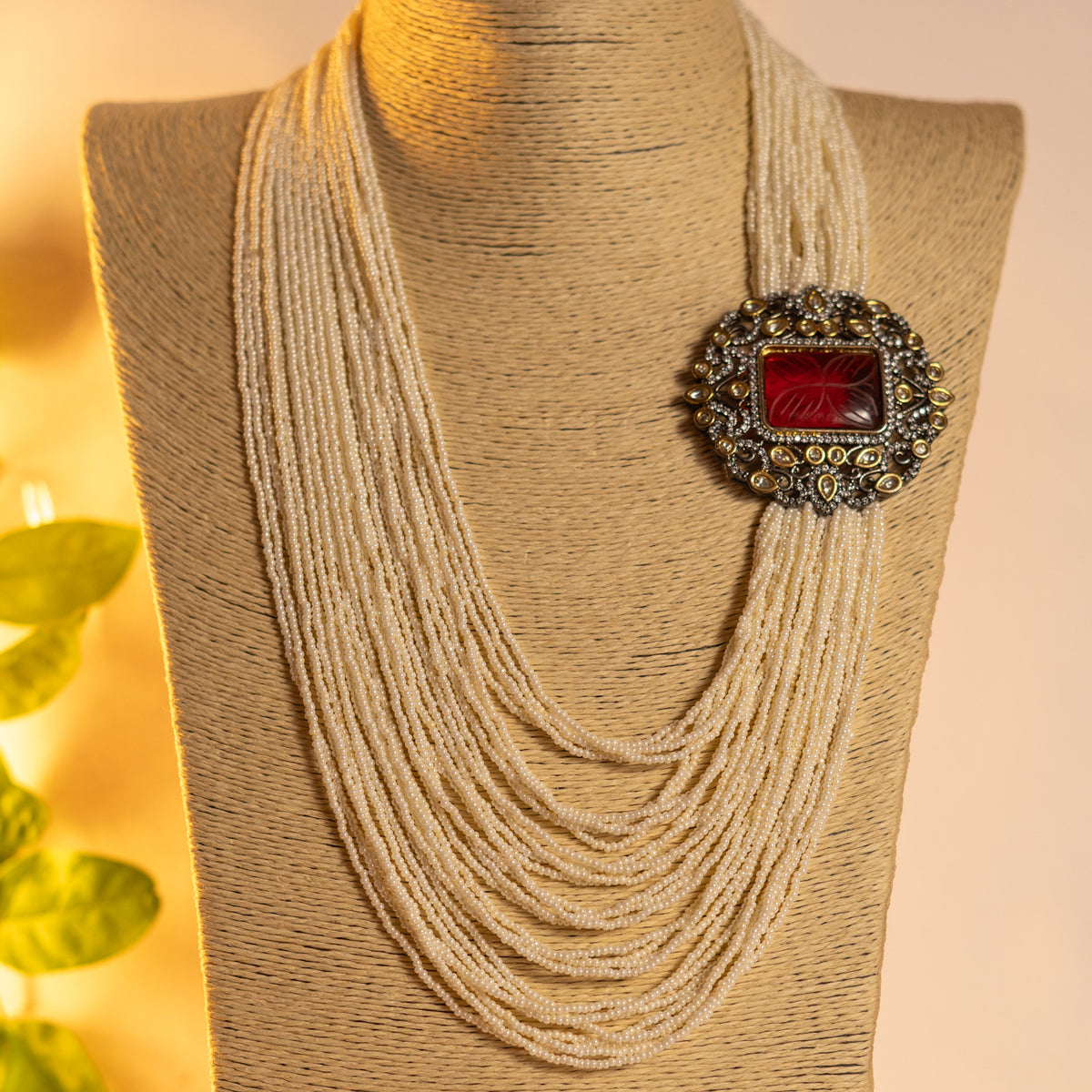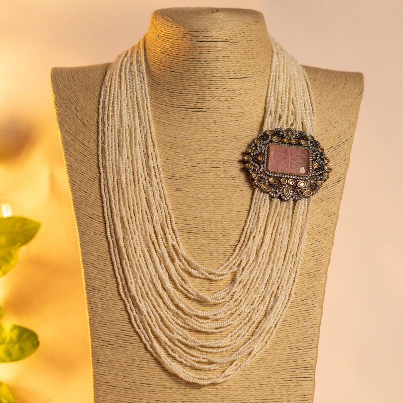 SHERINA PEARL CARVING STONE HANDMADE STATEMENT MALA ML16
