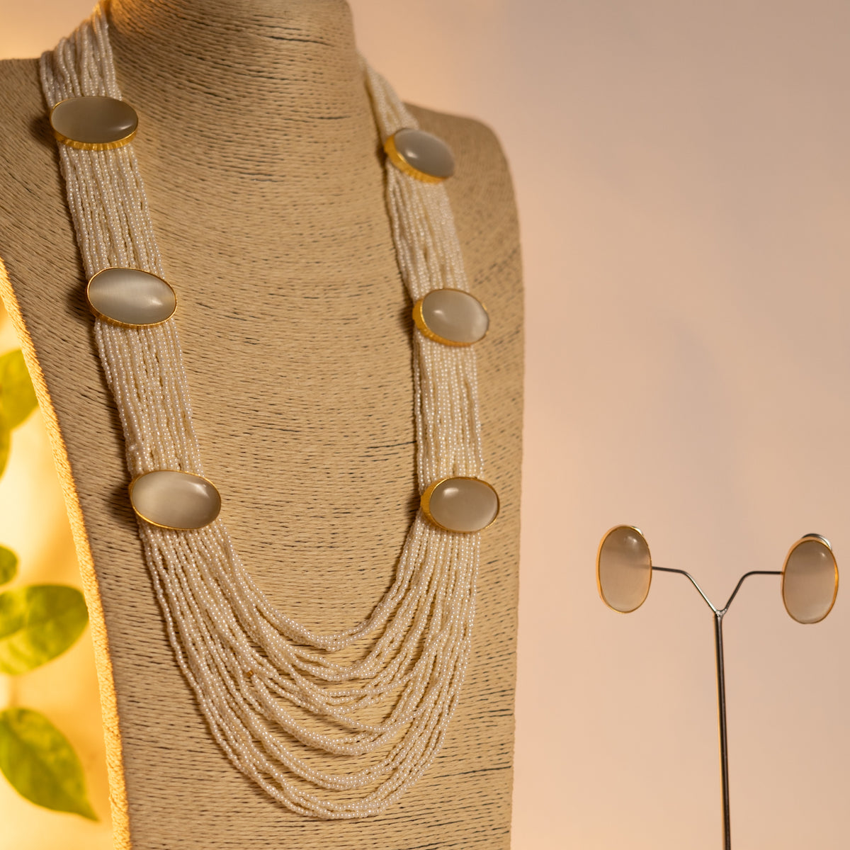 THISHI PEARL MONALISASTONE HANDMADE MALA WITH EARRING ML78