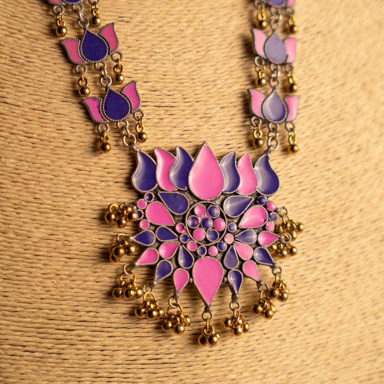 The YASHU AFGHANI MEENA BLACK POLISH MALA/ NECKPIECE ML209 showcases masterful craftsmanship with intricate beadwork crafted on a high-quality alloy base. Combining classic temple motifs with modern design, this necklace embodies refined artistry and enduring sophistication.