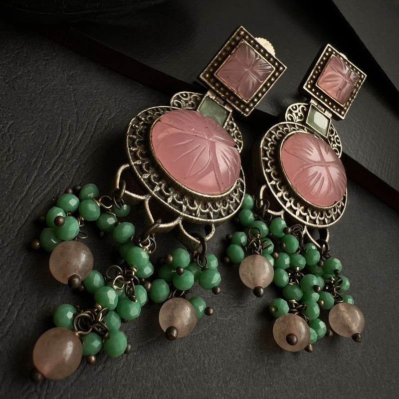 SHINA SILVER LOOK ALIKE RAW AND RUSTIC ANTIQUE SEMI HANDMADE EARRINGS ER441