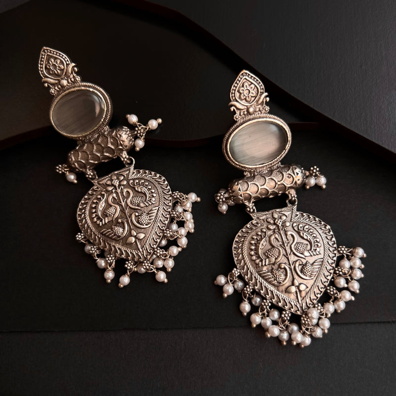 VARANA SILVER LOOK ALIKE RAW AND RUSTIC ANTIQUE SEMI HANDMADE EARRINGS ER638
