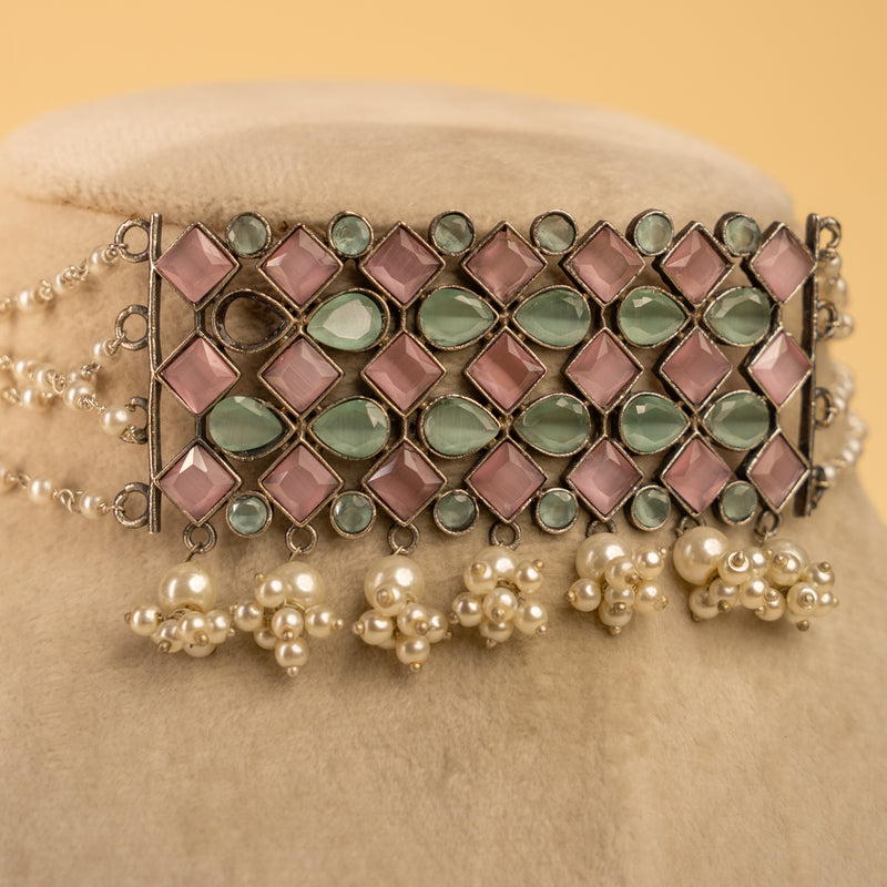 BAGYA BIJOUX PREMIUM AND EXCLUSIVE HANDMADE MONALISA CHOKER WITH EARRINGS CH405