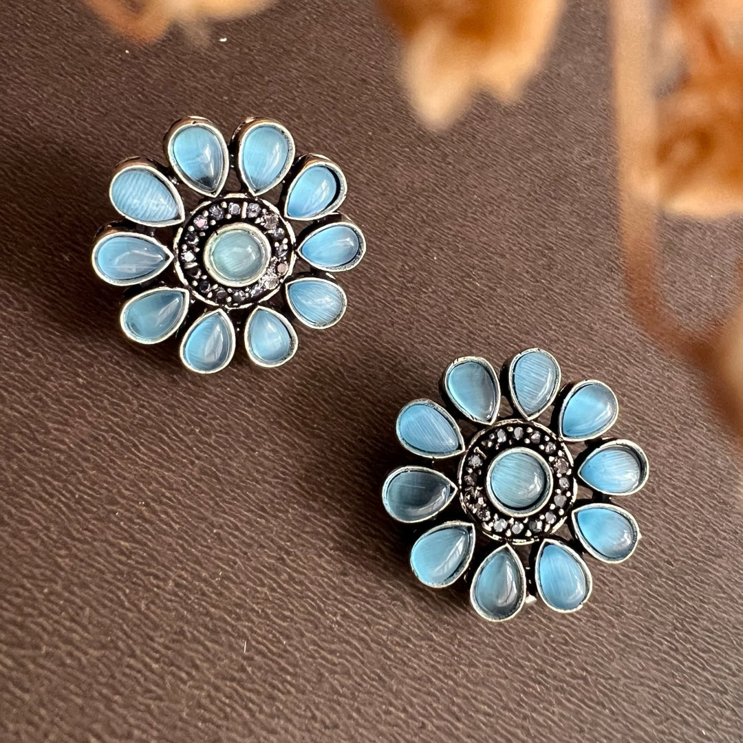 MARIGOLD FLORAL ANTIQUE OXIDIZED STUDS ER125