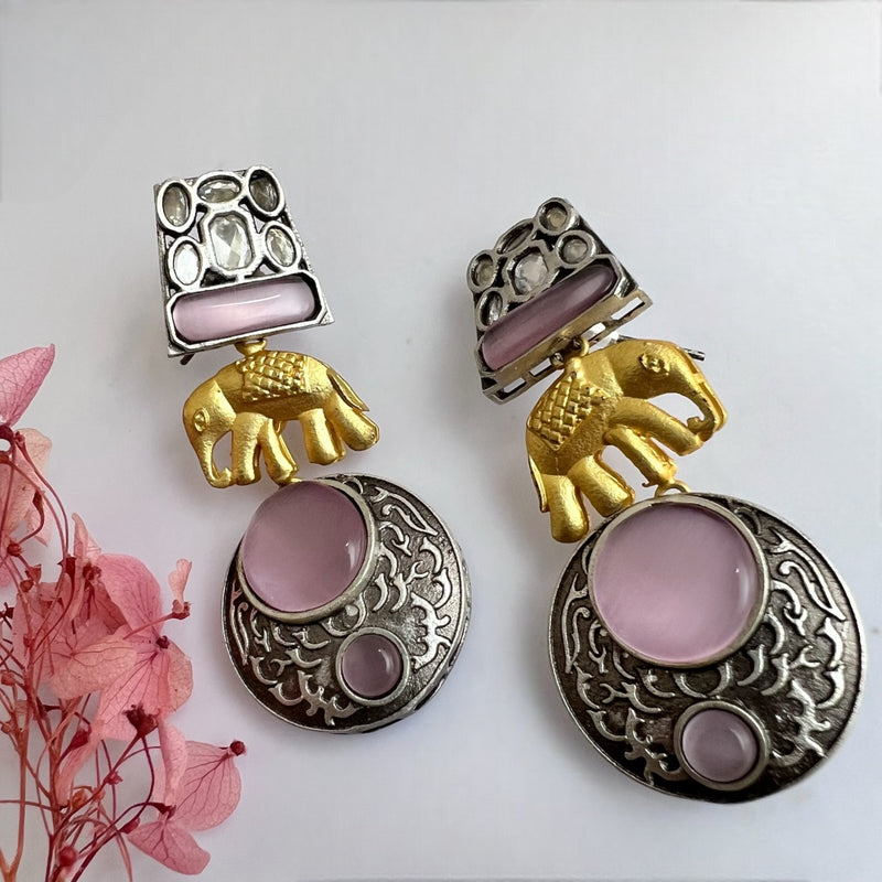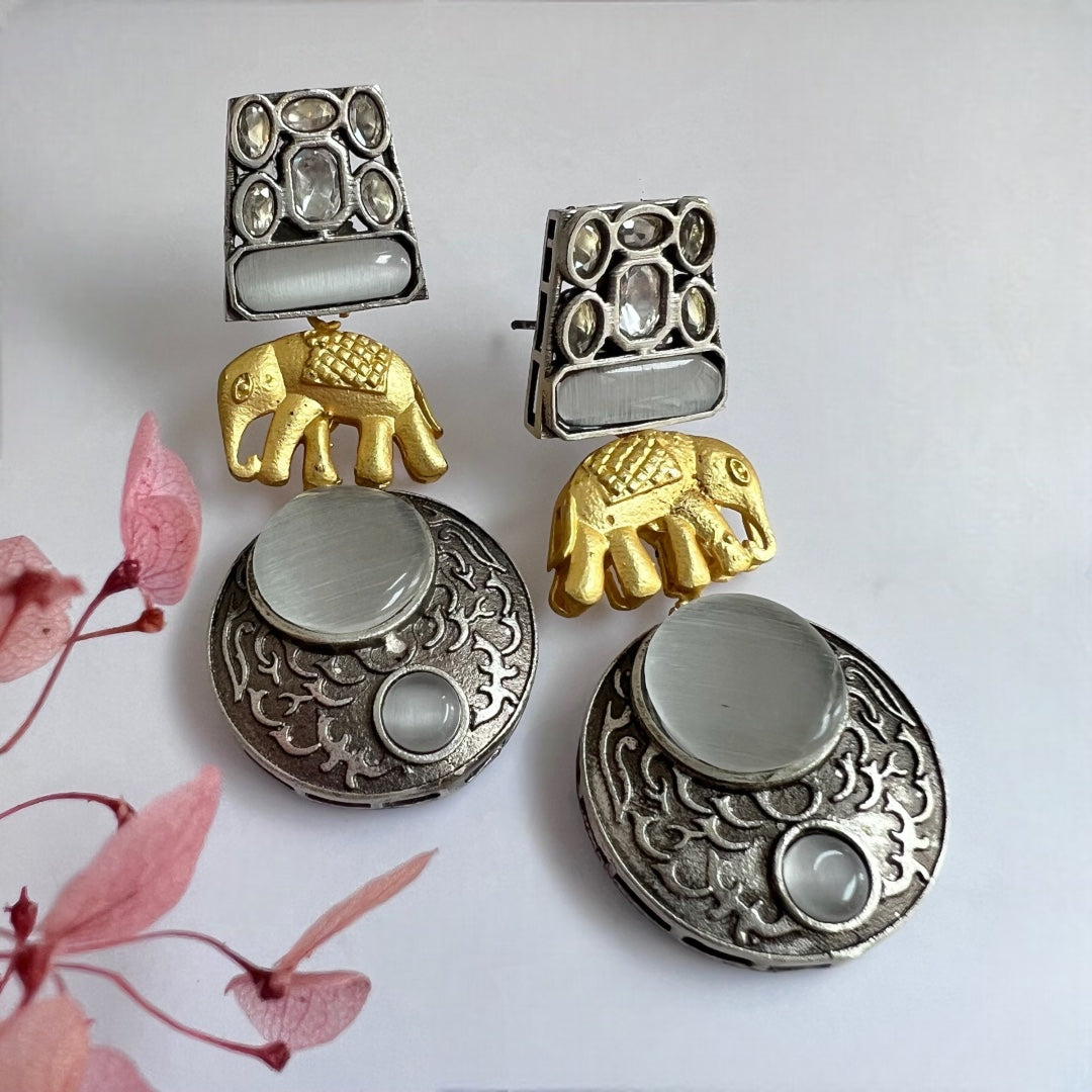 KICHARA FAUX SILVER RAW AND RUSTIC SEMI HANDMADE MONALISA STONE JHUMKAS/ EARRINGS ER651
