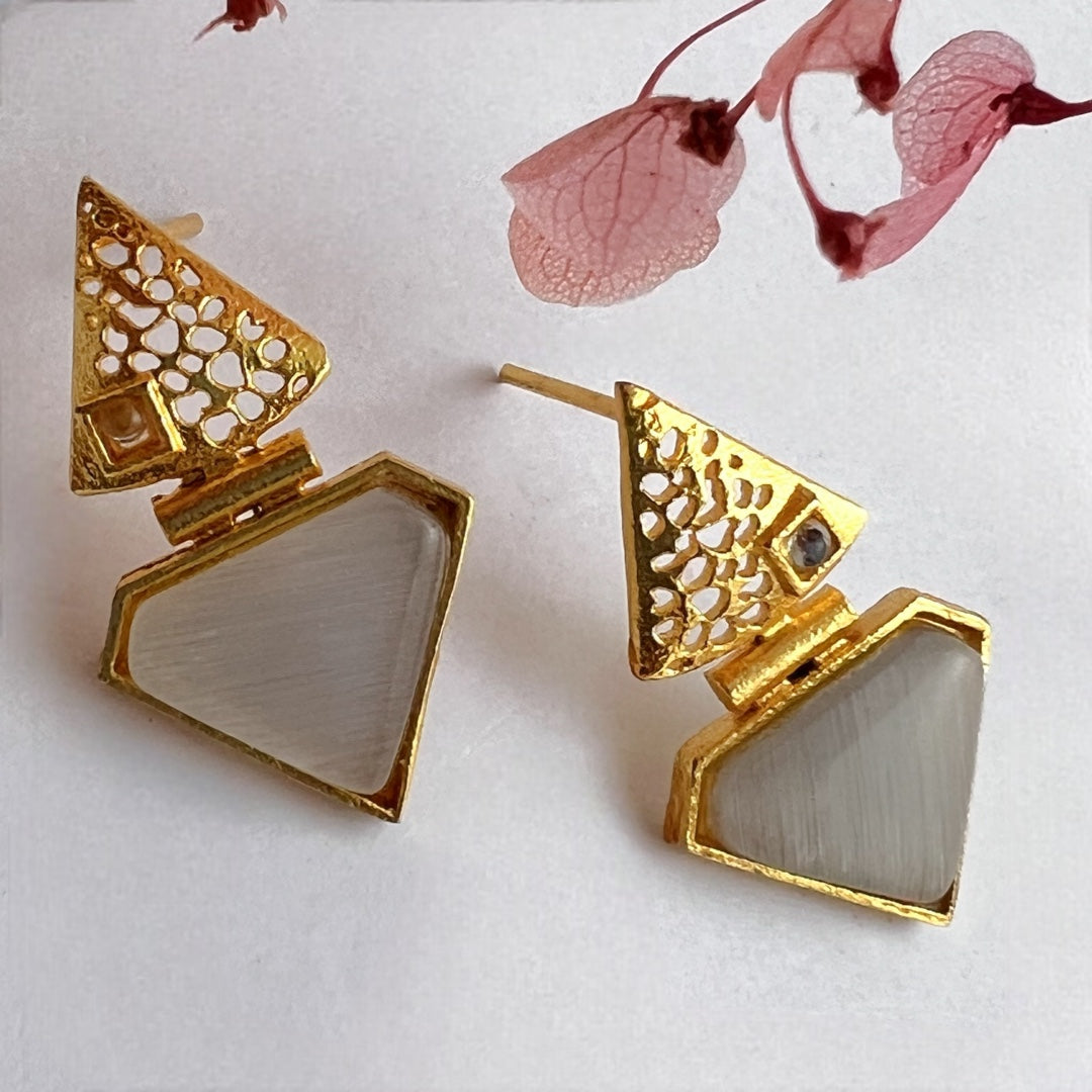 DIATANGLE GOLD TONED SEMI HANDMADE STUDS ER208