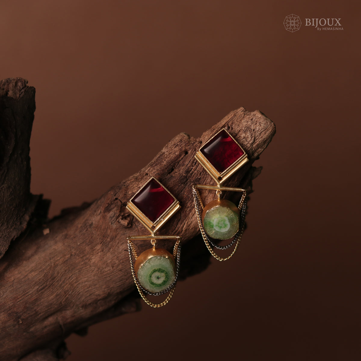 VANDHANA SEMI HANDMADE MONALISA STONE GOLD TONED EARRING- ER67