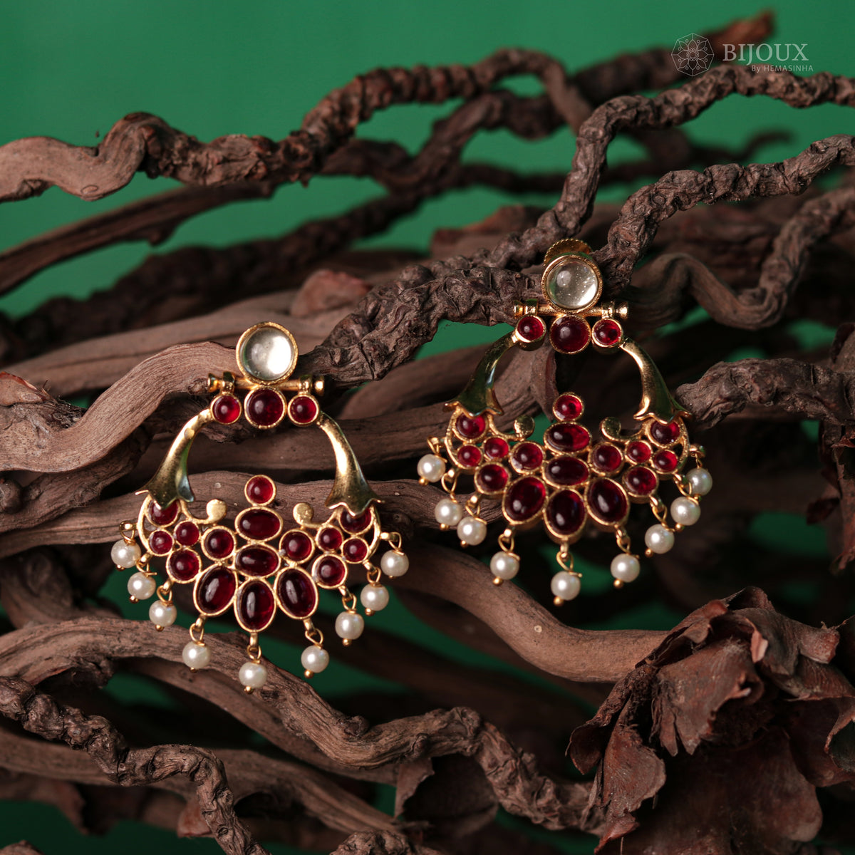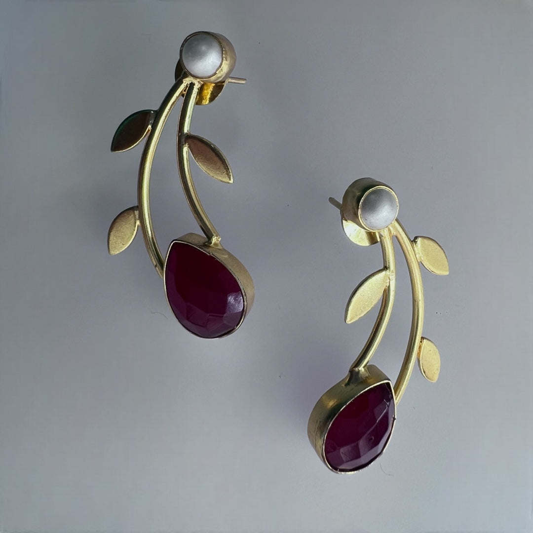 LEAFY PETAL SEMI HANDMADE MONOLISA GOLD WITH PEARL GOLD-TONED EARRINGS ER218