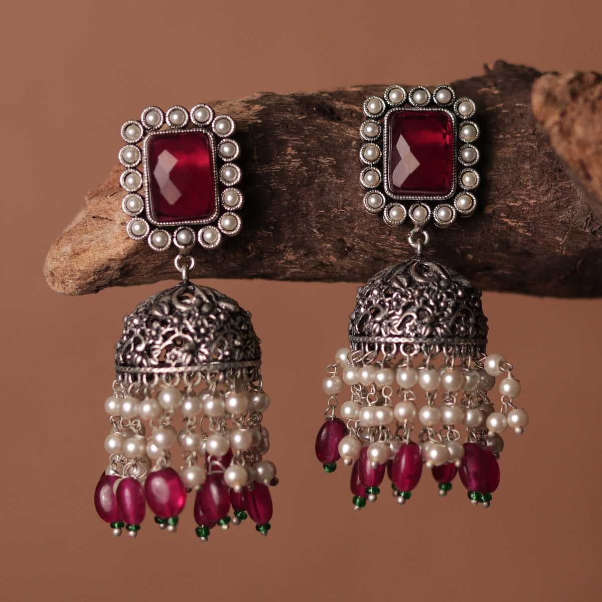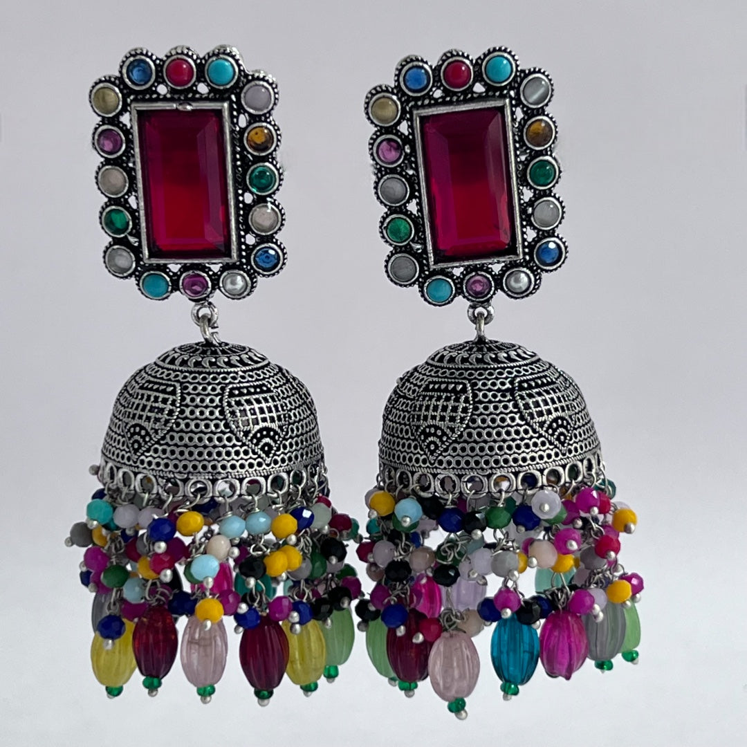 VEDHA OXIDIZED MONALISA SEMI HANDMADE JHUMKA ER159