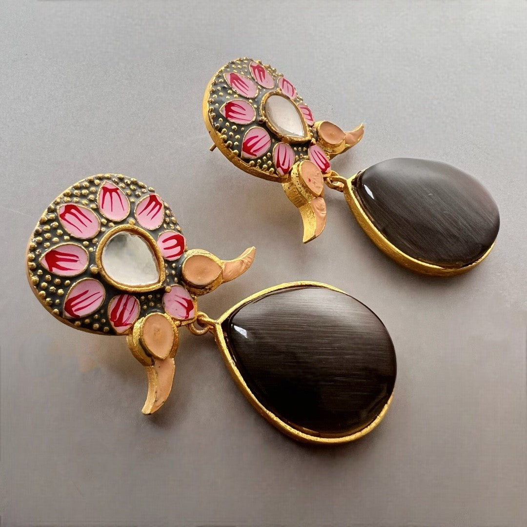 SHREYA CLASSIC SEMI-HANDMADE MONALISA STONE EARRINGS ER35