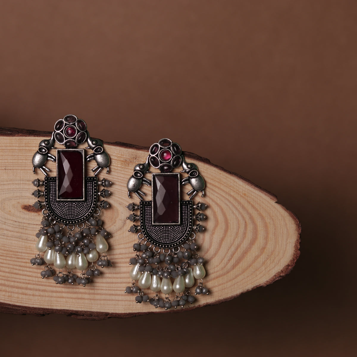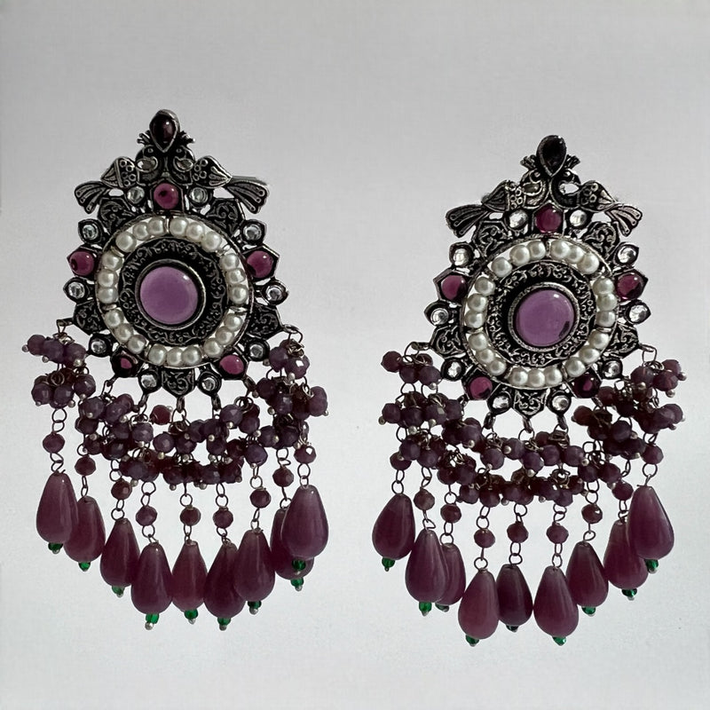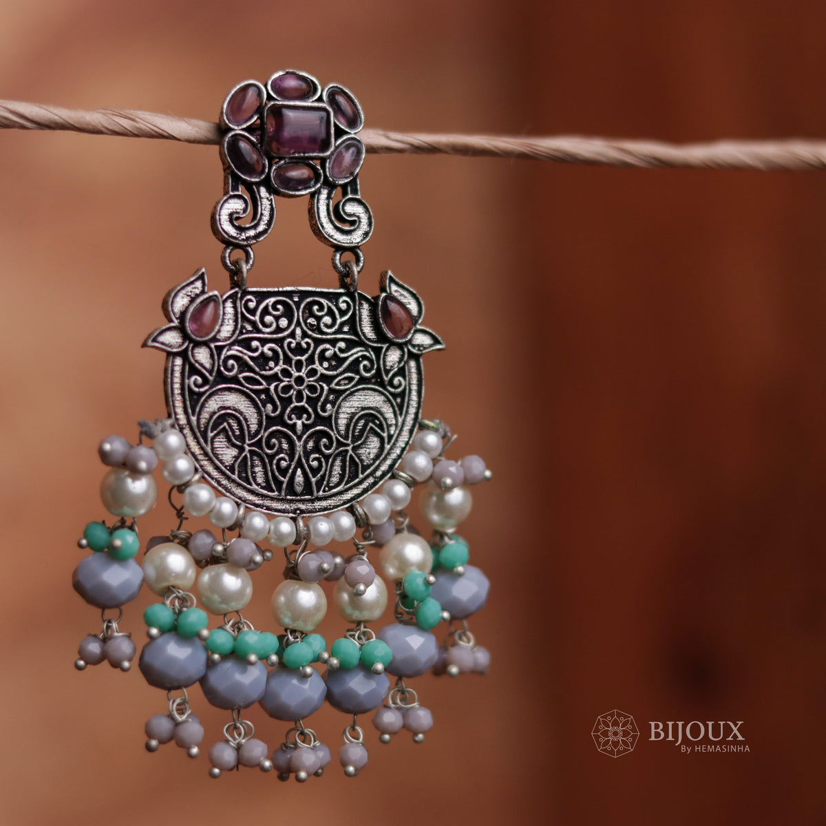 GLAMOUROUS TASSELS SEMI HANDMADE OXIDIZED EARRING ER121