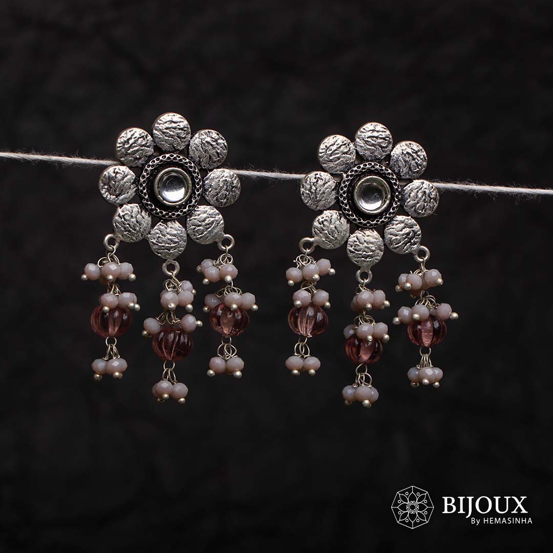 DAISY DISC PUMPKIN BEADED SEMI HANDMADE OXIDIZED EARRING ER132