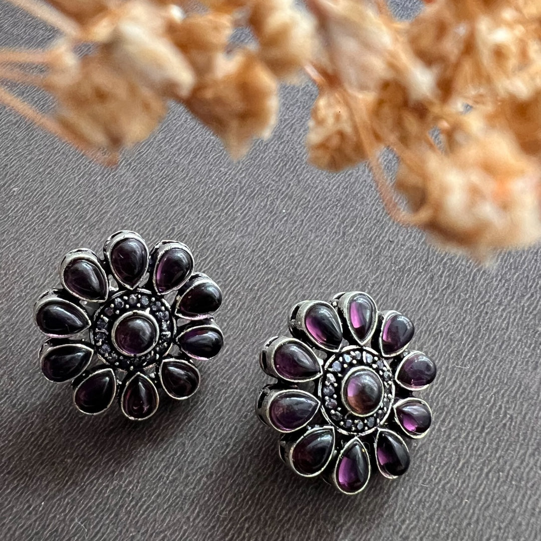 MARIGOLD FLORAL ANTIQUE OXIDIZED STUDS ER125