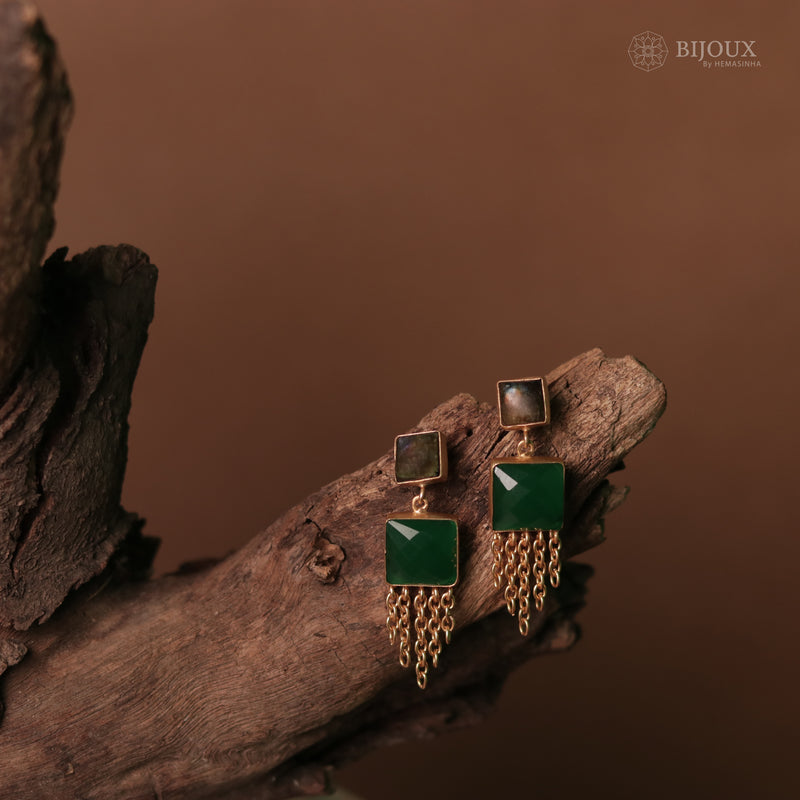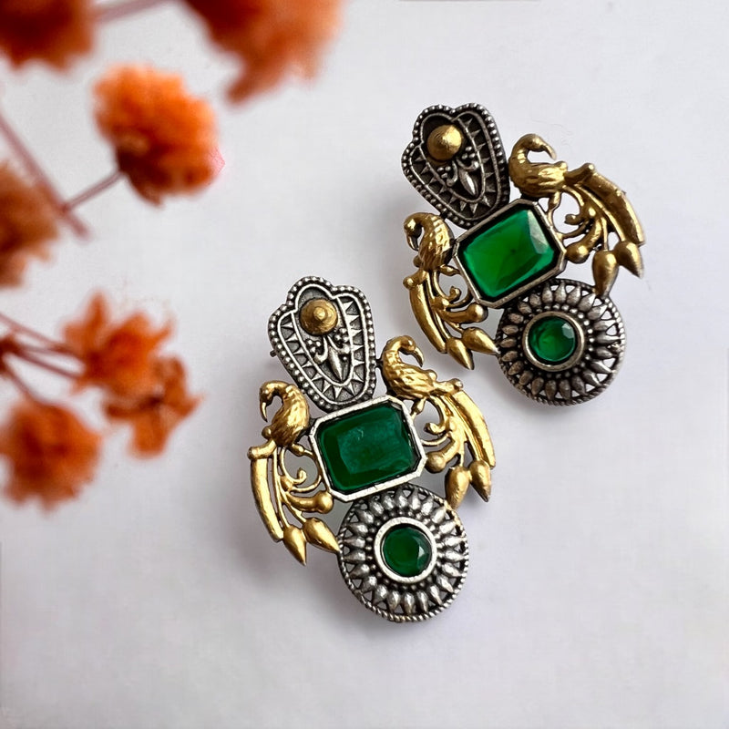 GEMSTONE PEACOCK ELEGANCE DUAL TONE SILVER LOOK ALIKE EARRING ER232