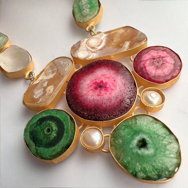 CHIC CROSSOVER DRUZY AGATE HANDMADE MULTI STONE STATEMENT RAW AND RUSTIC FINISH NECKLACE NL02