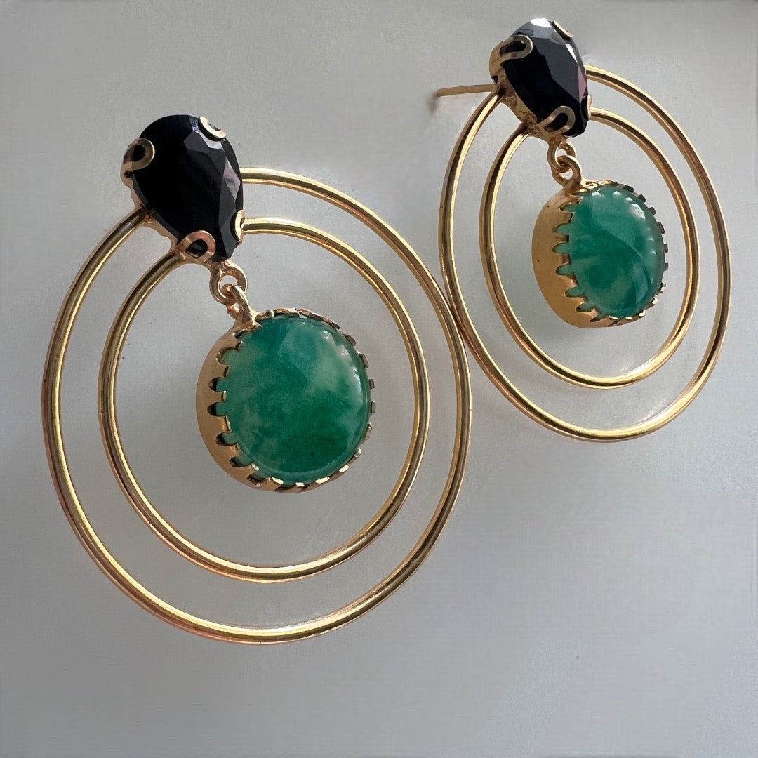 NATURES CIRCLE NATURAL STONE SILVER LOOK ALIKE HANDMADE EARRINGS ER156