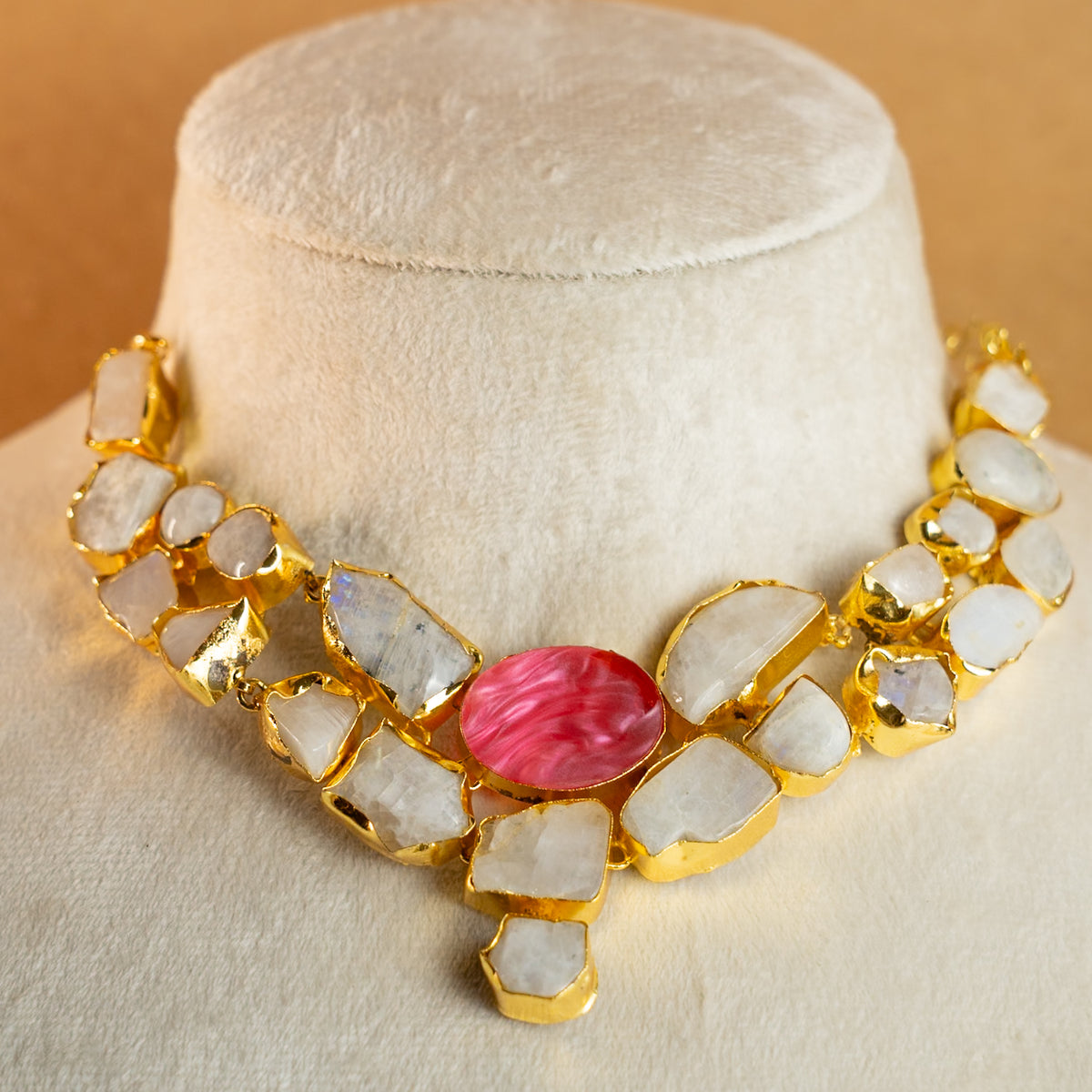 VISAGE HASLI / NECKPIECE WITH NATURAL CARVED STONE FACE AND MOP-CH480