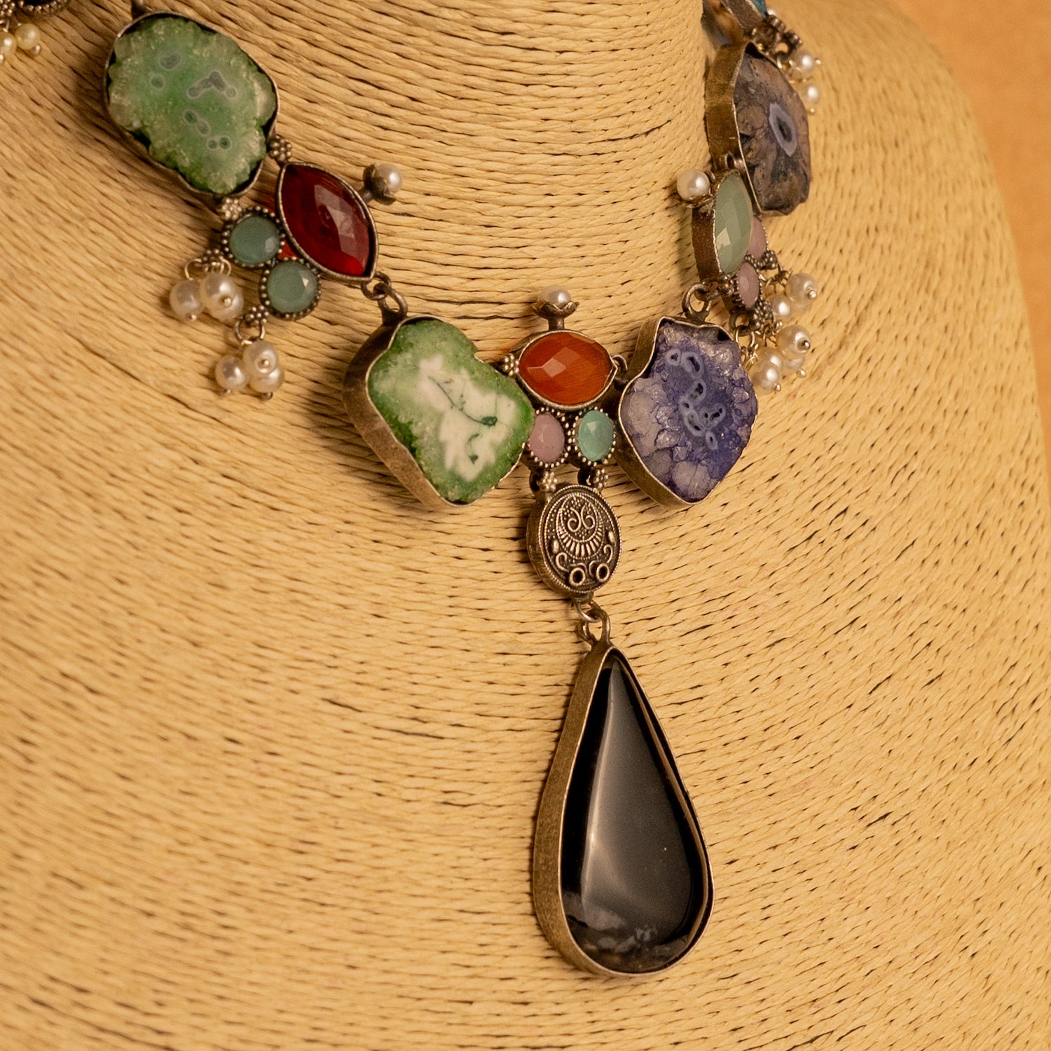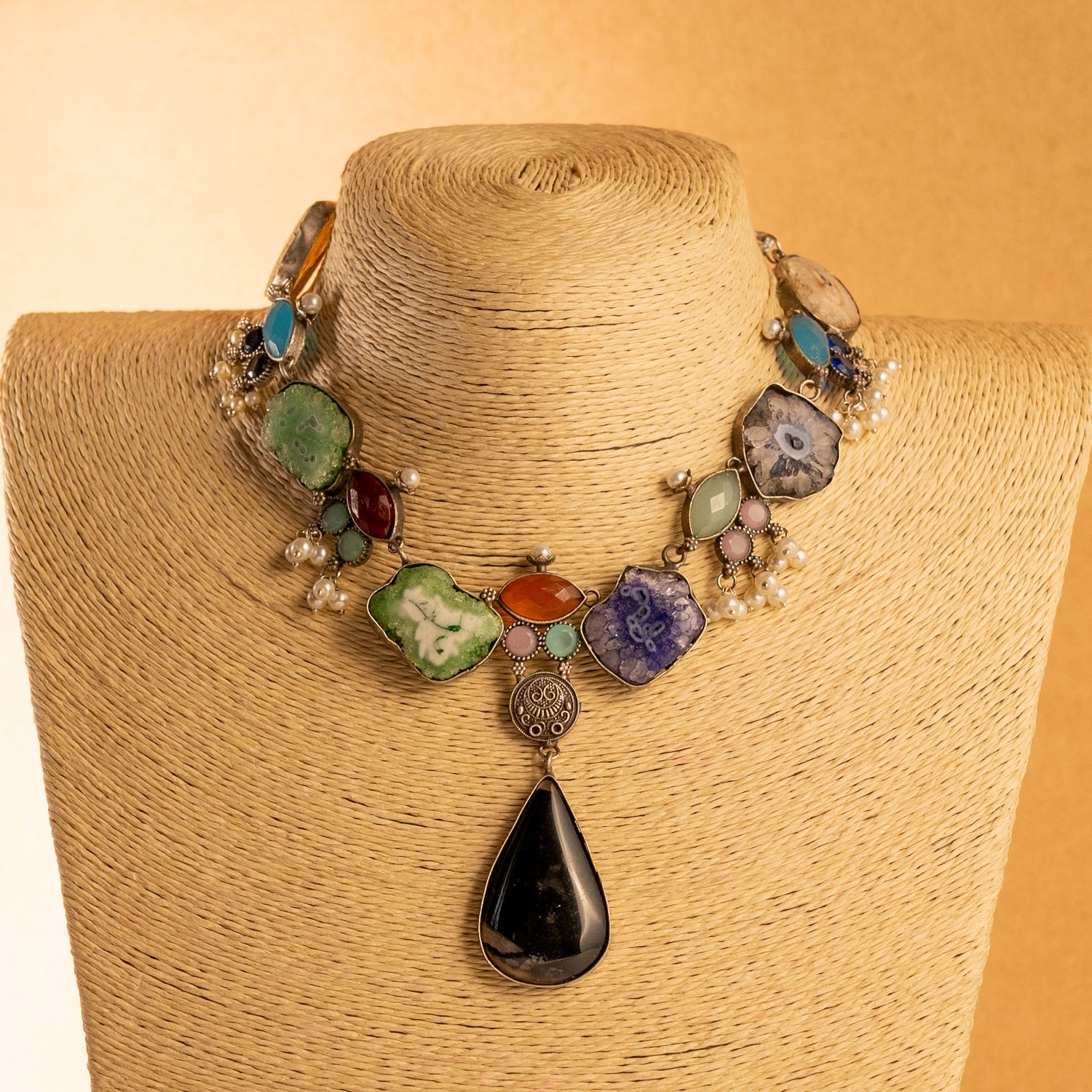BRITA NATUAL STONES PREMIUM FAUX SILVER HANDMADE ANTIQUE NECKLACE/NECKPIECE NL20