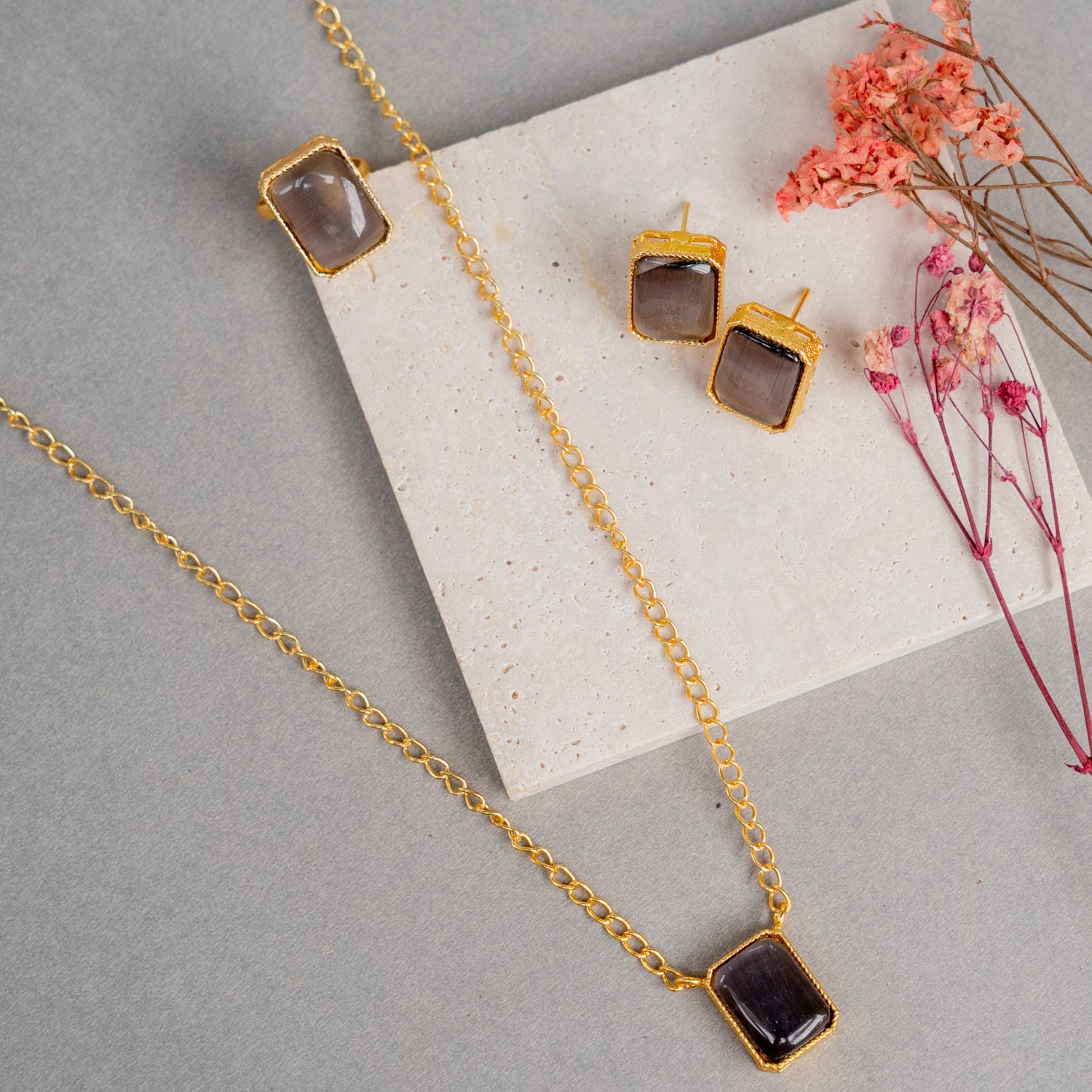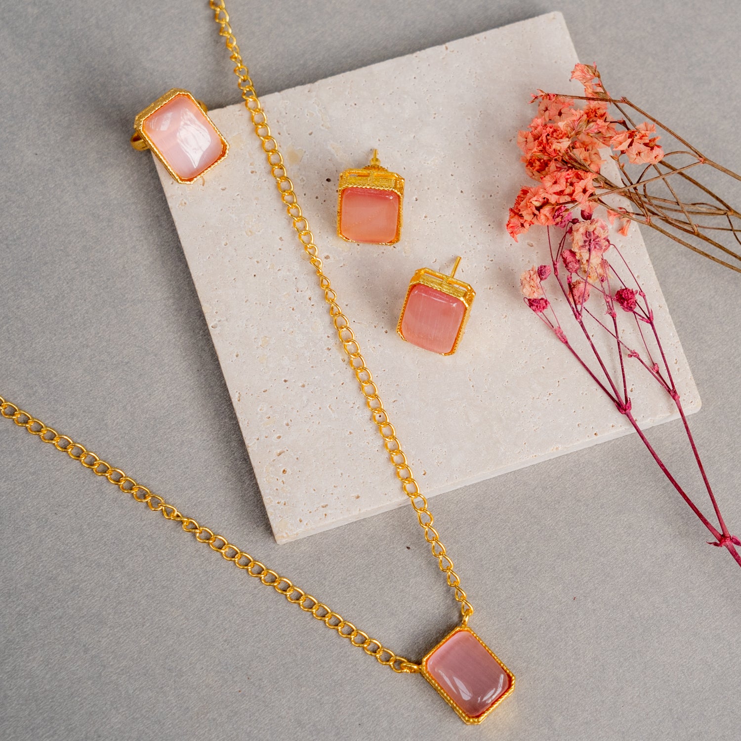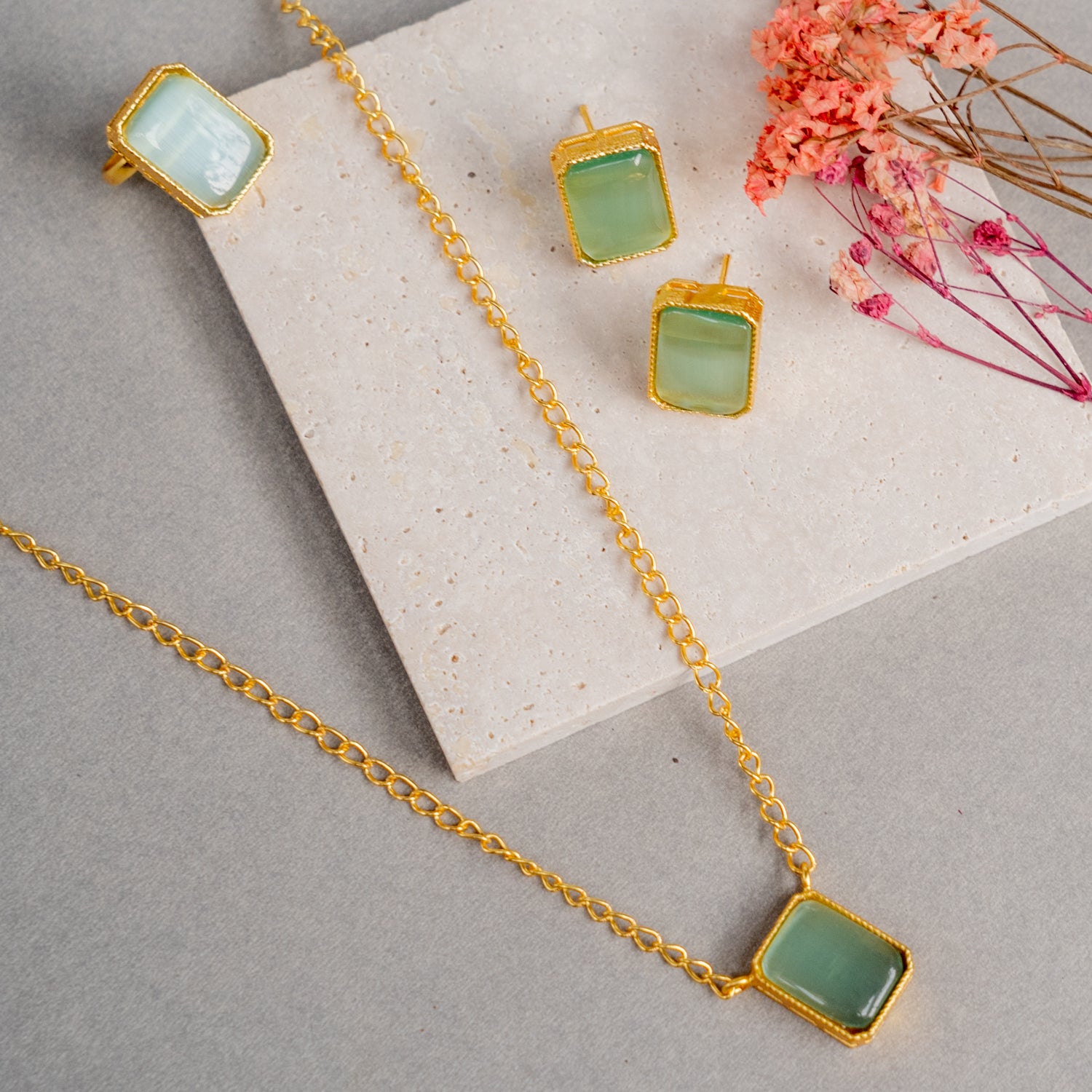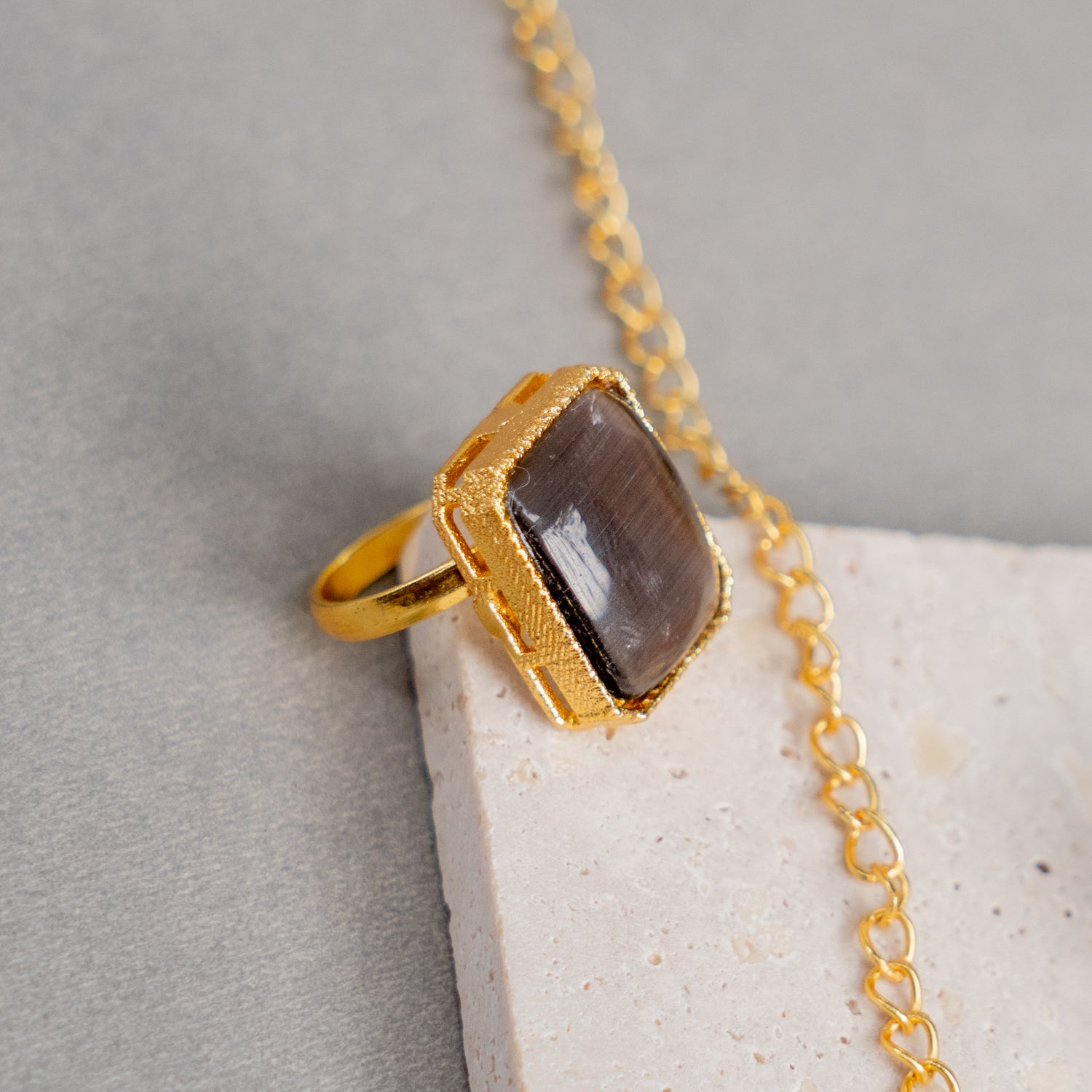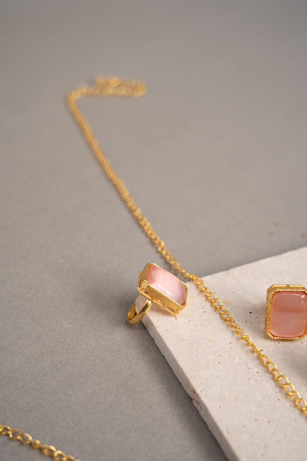 ELENA GOLD AND RUSTIC TONED HANDMADE HAND MADE NECKLAC EARRINGS WITH RING OF15