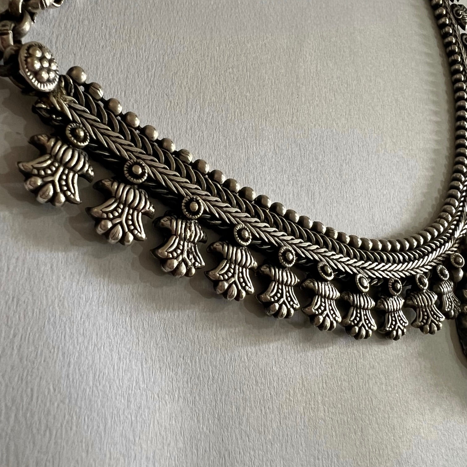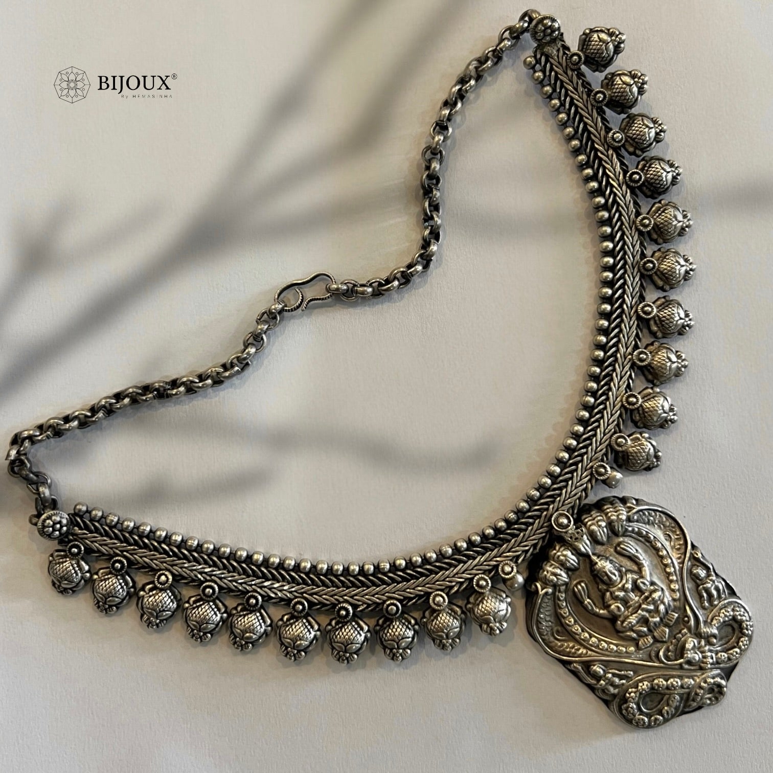 MRILANILI TEMPLE SEMI HANDMADE ANTIQUE SILVER TONED NECKLACE NL292