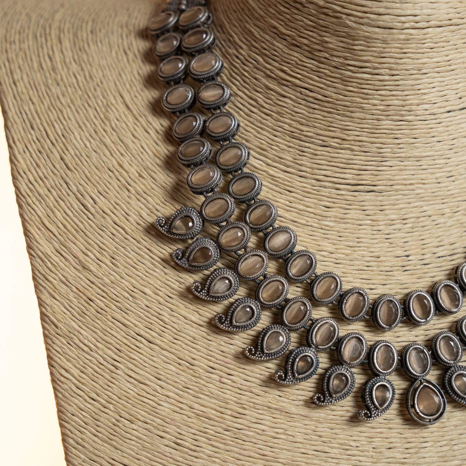 Experience the exceptional craftsmanship of the NORA FAUX SILVER PREMIUM SEMI HANDMADE ANTIQUE NECKPIECE/NECKLACE WITH EARRING NL282. Crafted with carefully curated premium stones, this distinguished jewelry piece embodies sophisticated elegance and artistic excellence. Perfect for connoisseurs who consider superior workmanship and timeless sophistication essential components in their collection of fine jewelry investments.