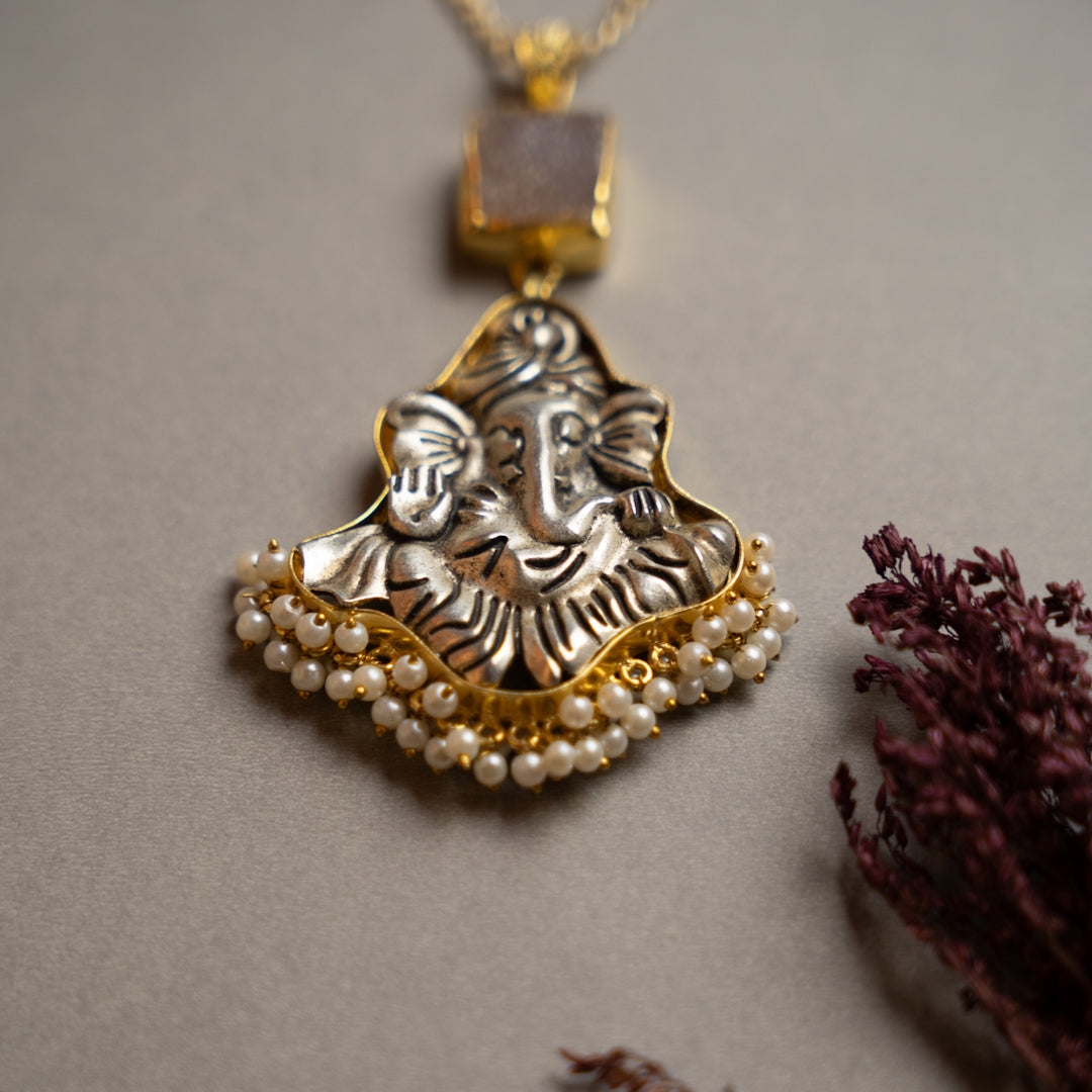 ROMANA PREMIUM 18K PLATED RAW STONE WITH BRASS HANDMADE ANTIQUE NECKPIECE/NECKLACE NL257
