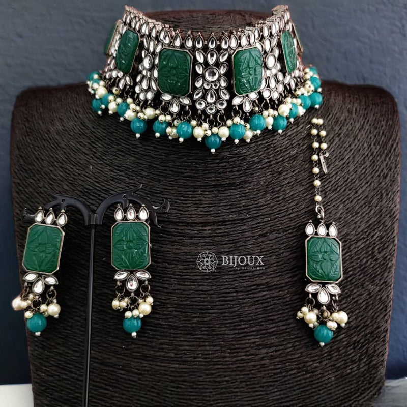 ADIRANA SEMI HANDMADE ANTIQUE NECKPIECE/CHOKER WITH STUD CH498.