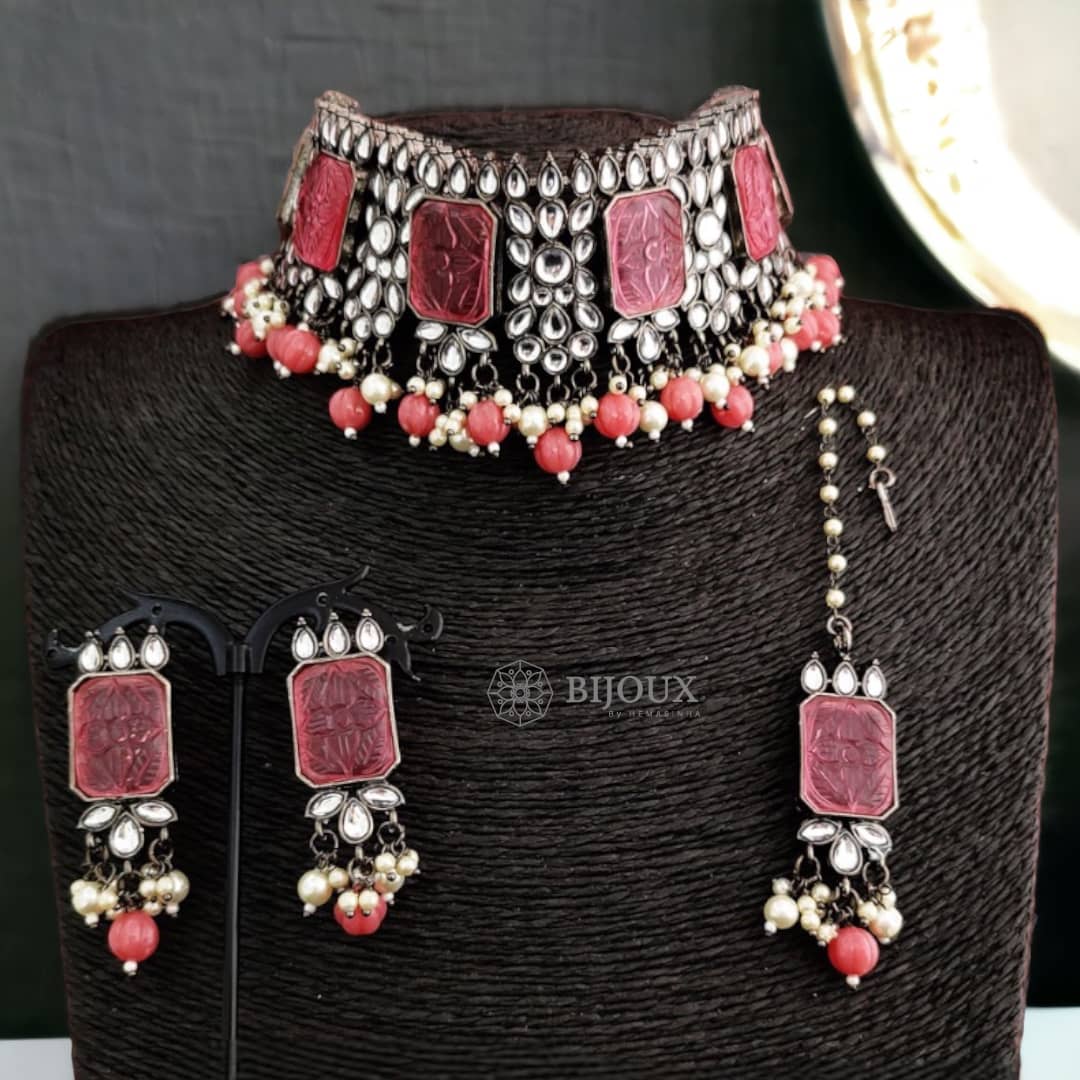 PRISMA FAUX KUNDAN SEMI HANDMADE NECKLACE WITH EARRING AND TIKKA NL206