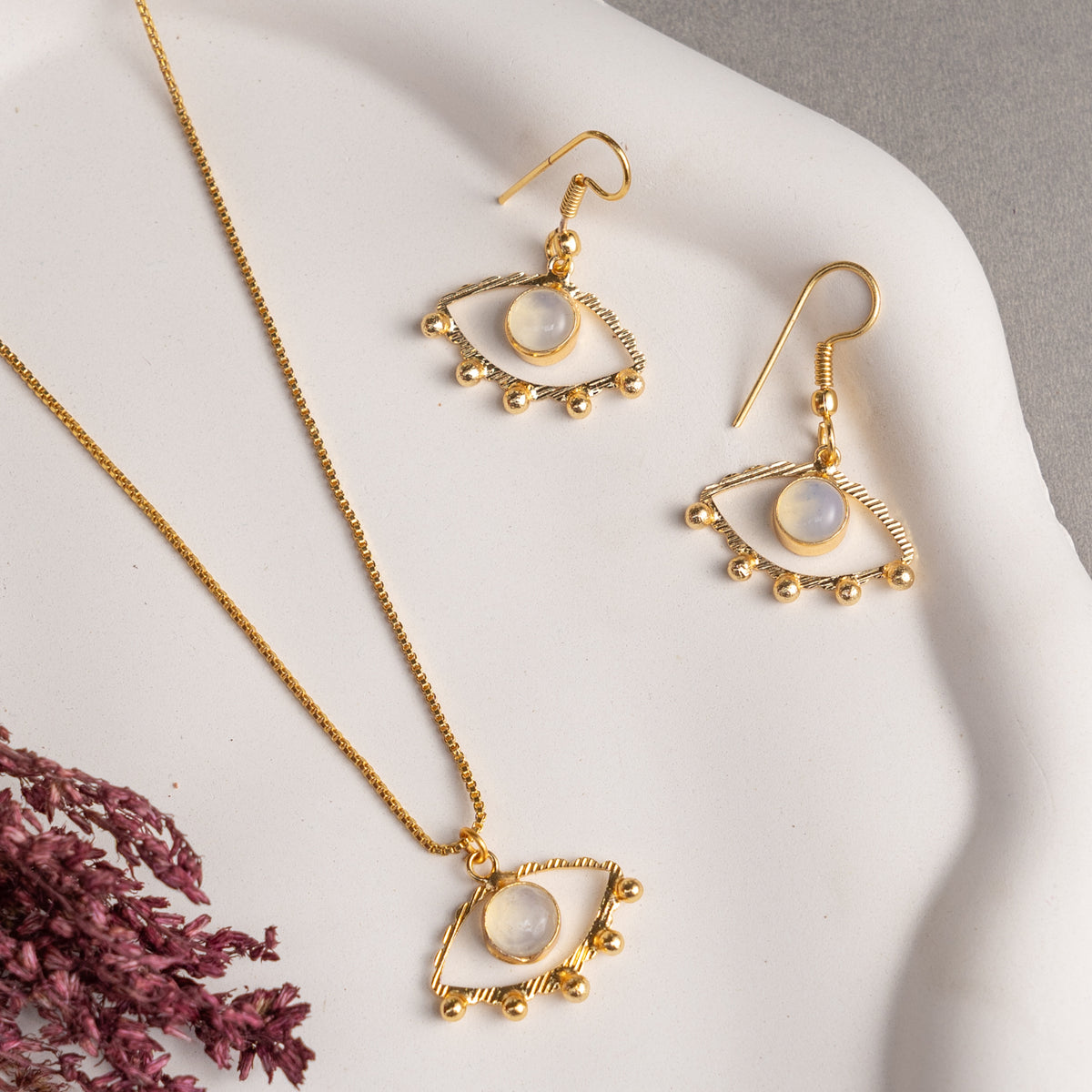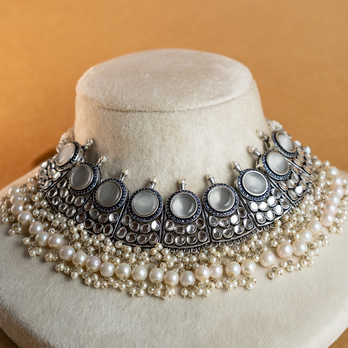 RISHONA DUAL TONED SEMI HANDMADE MONALISA STONES NECKPIECE/NECKLACE WITH EARRINGS NL320