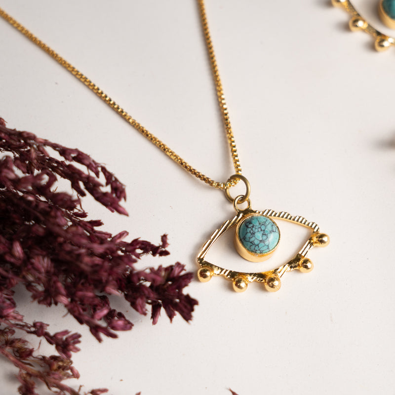 ELOISE GOLD TONED HANDMADE HAND HAMMERED NECKLACE WITH EARRINGS OF23