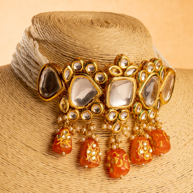 RITHIKA KUNDAN HANDMADE HAND PAINTED PEARL ANTIQUE NECKPIECE NECKLACE NL93