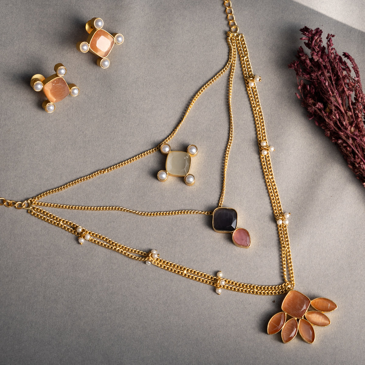 NIHARA GOLD TONED HANDMADE HAND HAMMERED NECKLACE WITH EARRINGS NL225
