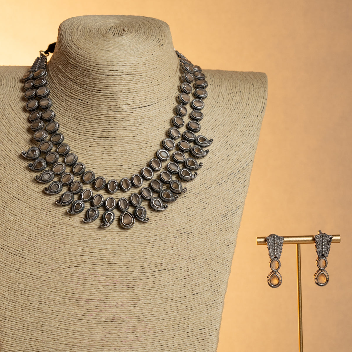 NORA FAUX SILVER PREMIUM SEMI HANDMADE ANTIQUE NECKPIECE/NECKLACE WITH EARRING NL282
