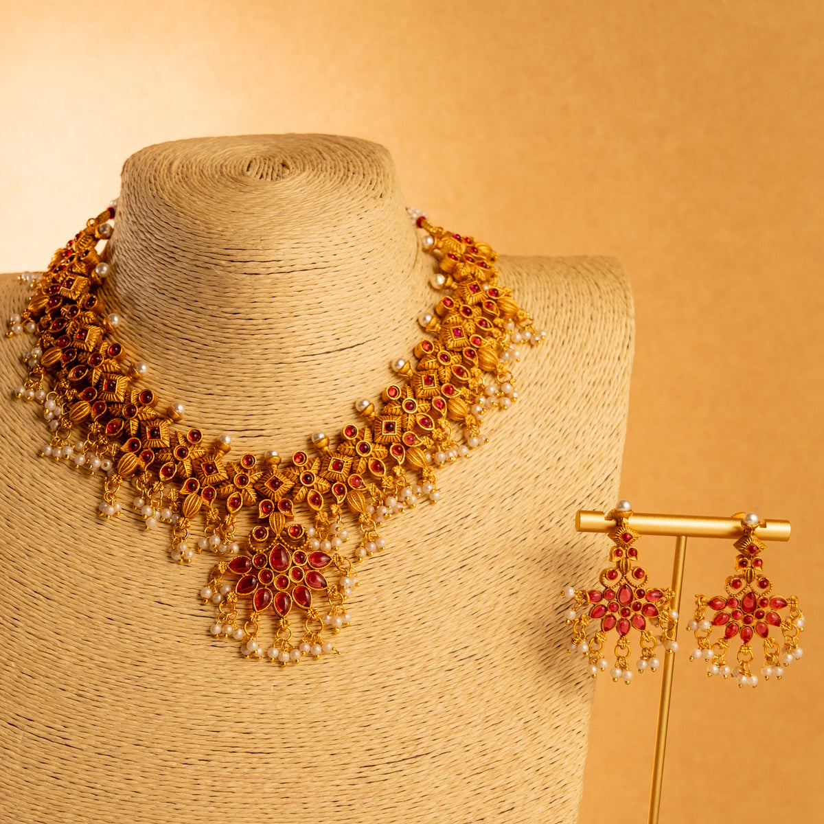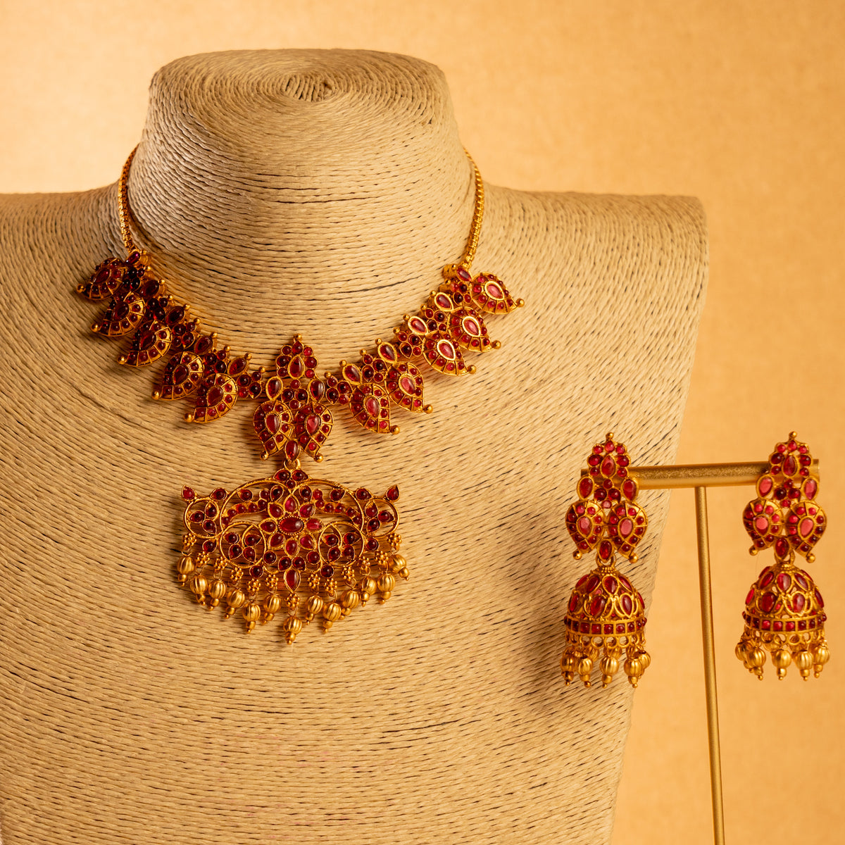 VASHTI TEMPLE SEMI HANDMADE ANTIQUE NECKPIECE/NECKLACE WITH EARRING NL285