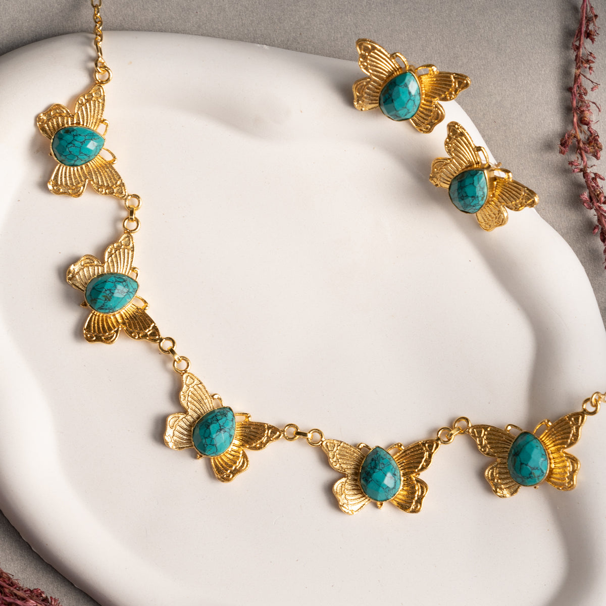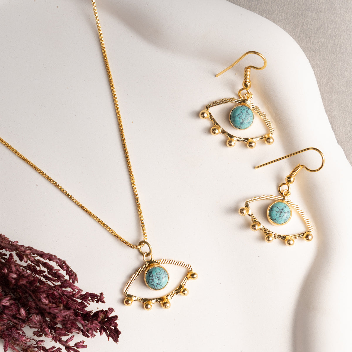 ELOISE GOLD TONED HANDMADE HAND HAMMERED NECKLACE WITH EARRINGS OF23