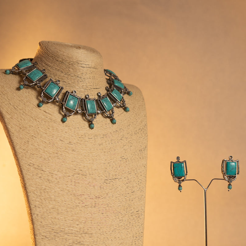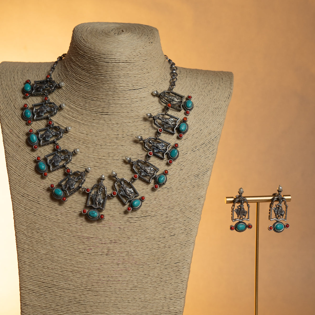 REYA SEMI HANDMADE RAW AND RUSTIC FINISH ANTIQUE NECKPIECE/NECKLACE WITH EARRING NL277